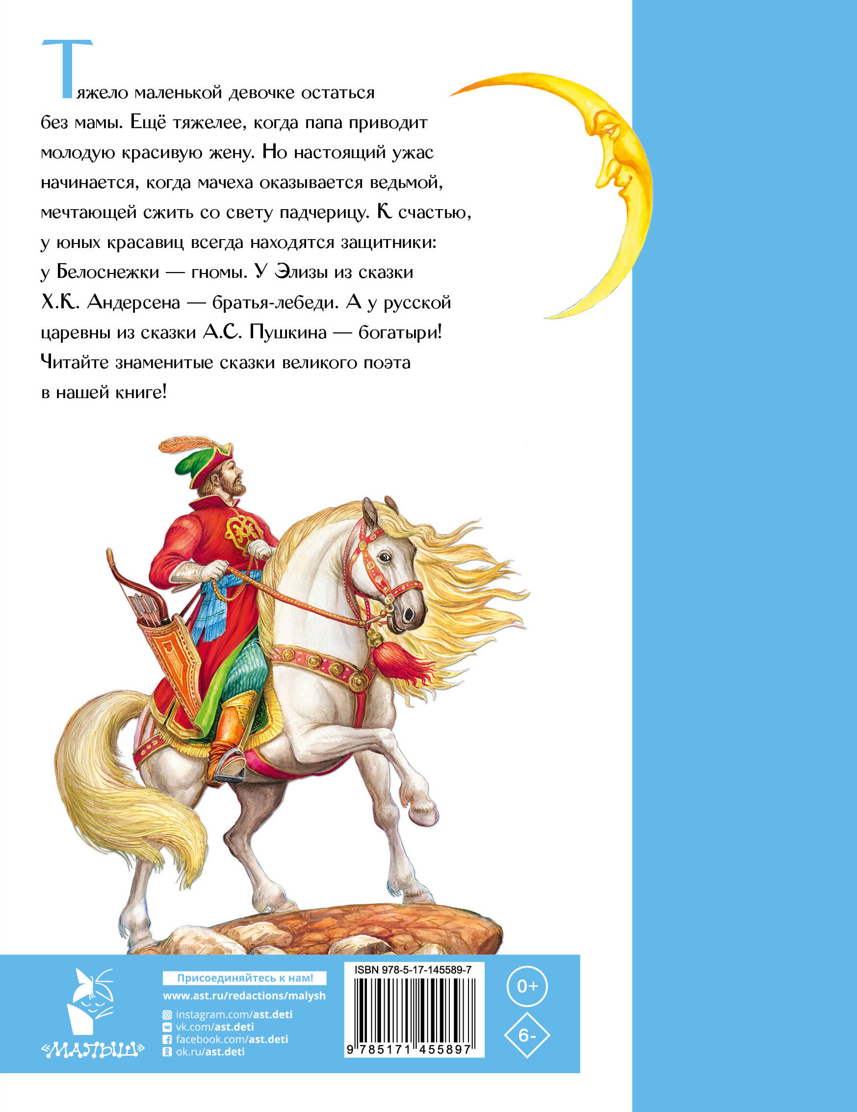В книгу вошли три знаменитые сказки А.С. Пушкина: "Сказка о мёртвой царевне и о семи богатырях", "Сказка о рыбаке и рыбке" и "Сказка о попе и о работнике его Балде". Самая романтичная из них - о юной царевне, которую мечтает сжить со свету злая мачеха-ведьма. Вся сказка наполнена любовью, побеждающей ревность и ненависть. А вот две другие - почти басни, притчи с моралью: победи свою жадность, пока не поздно, иначе останешься ни с чем… Рисунки И.Цыганкова.| Издательство | Издательство "АСТ" |