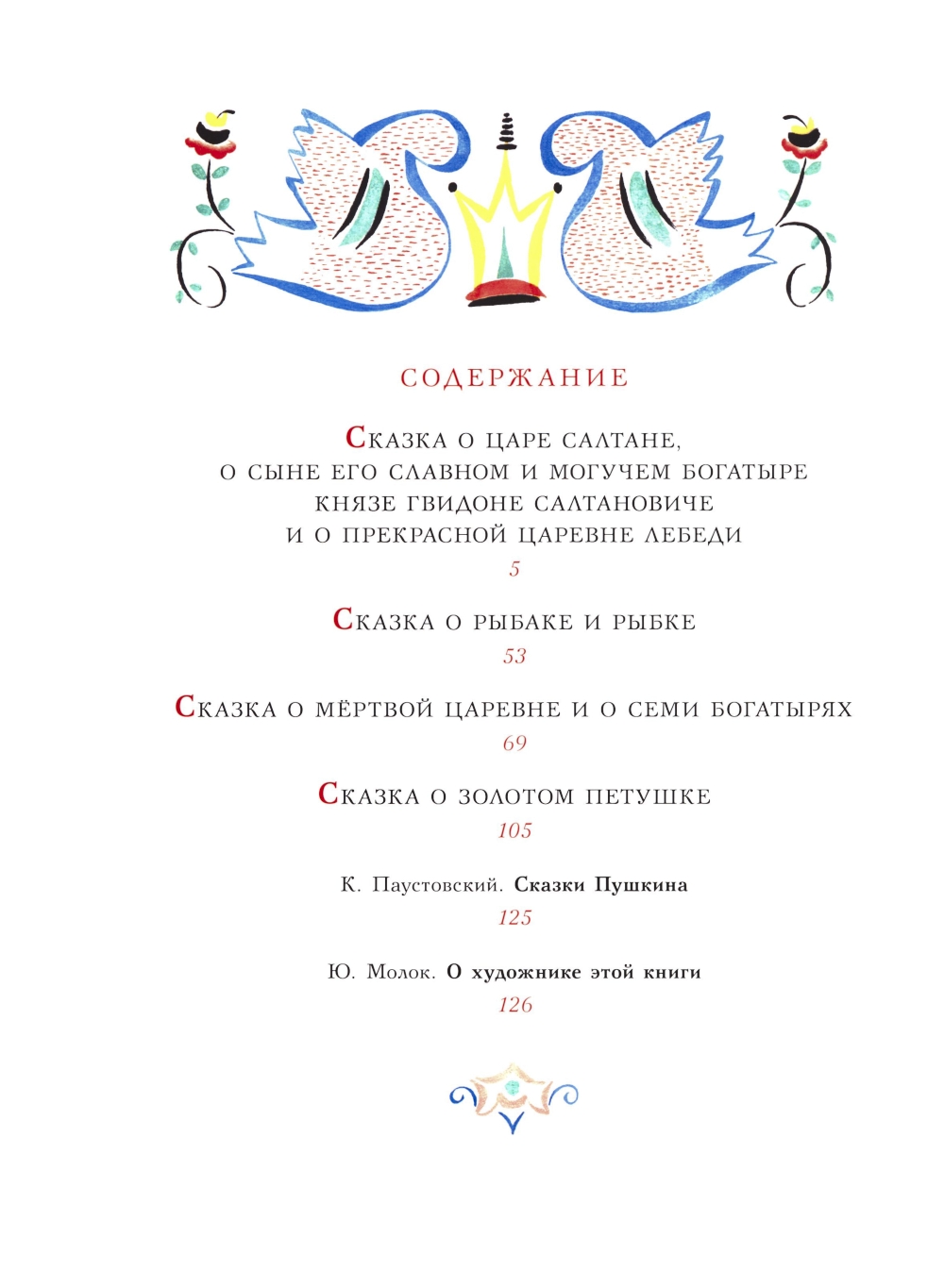 Сказки А.С. Пушкина - это бесспорный шедевр, классика на все времена, наше непреходящее культурное наследие. Долгожданное переиздание сказок Пушкина с рисунками одного из лучших иллюстраторов детской книги В.М. Конашевича - это книга-праздник, самая главная книга в любой детской библиотеке. Ее можно и нужно не только читать и перечитывать, но и бесконечно рассматривать. В книгу вошли всем известные и любимые сказки: «Сказка о царе Салтане» «Сказка о рыбаке и рыбке» «Сказка о мертвой царевне и семи богатырях» «Сказка о золотом петушке» Почти на каждом развороте яркие, нарядные иллюстрации: златоглавые города, волшебные предметы - говорящее зеркало и наливное яблочко, пиршественные столы с роскошными яствами, празднично одетый, ликующий народ, красочное убранство царских хором, чудесные превращения золотой рыбки и Царевны Лебеди, карнавальное шествие иноземной свиты Шамаханской царицы, появление тридцати трех богатырей. Сам художник так писал о своей работе: "Как видите, здесь нет разлюли русского стиля, но думаю, что Русью пахнет... В моих рисунках должны сказаться три момента. Во-первых, русский дух (он у меня сказывается в архитектуре, костюмах, типах); во-вторых, то, что иллюстратор - современный художник и именно я: это налицо; и, в-третьих, Пушкин - его стиль и его время (классицизм): стиль сказывается в ясности и четкости моей манеры, а время (пушкинское) больше всего в орнаменте (рамках, которые перекликаются с рукоделием тех, кто эти сказки рассказывал). Книгу органично завершают статья писателя К. Паустовского, посвященная сказкам Пушкина, и небольшая, но тёплая, идущая от сердца статья знатока книжной графики Ю. Молока о В.М. Конашевиче. Рекомендуется дошкольникам и младшим школьникам, а также читателям всех возрастов, ценящим книгу как произведение искусства. Уникальная, прекрасно оформленная и качественно изданная книга может быть отличным подарком.| Издательство | Мелик-Пашаев |