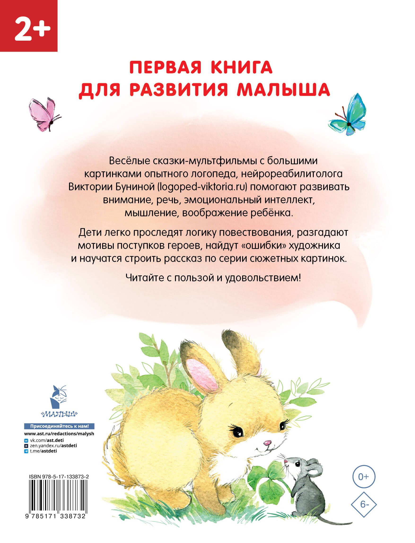 Перед вами первая и самая главная книга для развития вашего малыша! Она поможет совершенствовать речь, внимание, эмоциональный интеллект, мышление, воображение ребенка. Для этого нужно всего лишь несколько минут в день читать и обсуждать весёлые сказки-мультфильмы. В чем секрет?! Сказки основаны на авторской методике опытного логопеда-нейрореабилитолога Виктории Буниной. Дети легко проследят логику повествования, разгадают мотивы поступков героев, найдут «ошибки» художника и научатся составлять рассказ по серии сюжетных картинок. С этой книги начнется успешный путь вашего малыша к развернутому высказыванию, точному пересказу, грамотному чтению и письму, вы заложите прочный фундамент для подготовки к школе! Читайте с пользой и удовольствием полезные и интересные сказки для малышей. Это лучший подарок для вашего ребенка!| Издательство | ИЗДАТЕЛЬСТВО "АСТ" |