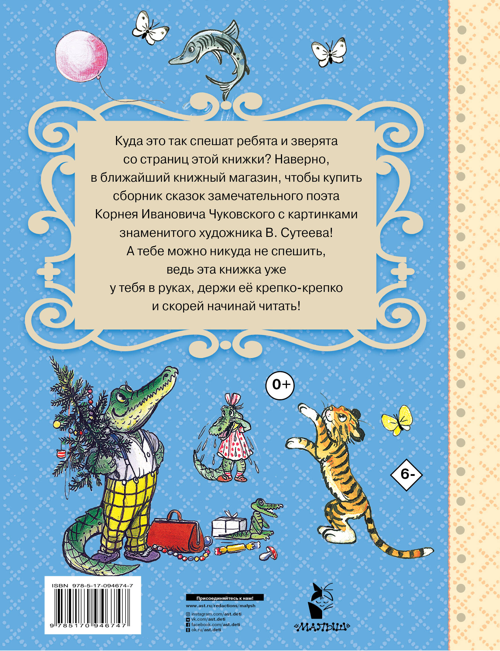 В нашу книгу вошли сказки в стихах К. Чуковского, написанные им в разные годы. Свою первую сказку для детей («Крокодил») К. Чуковский написал в 34 года, уже будучи известным в литературных кругах критиком. Далее последовали «Мойдодыр», «Федорино горе» и другие. В нашем издании представлены сказки К. Чуковского, рисунки к которым сделал В. Сутеев - классик детской иллюстрации. Для дошкольного возраста. Для родителей, воспитателей и руководителей детского чтения дома и в детском саду.| Издательство | Издательство "АСТ" |
