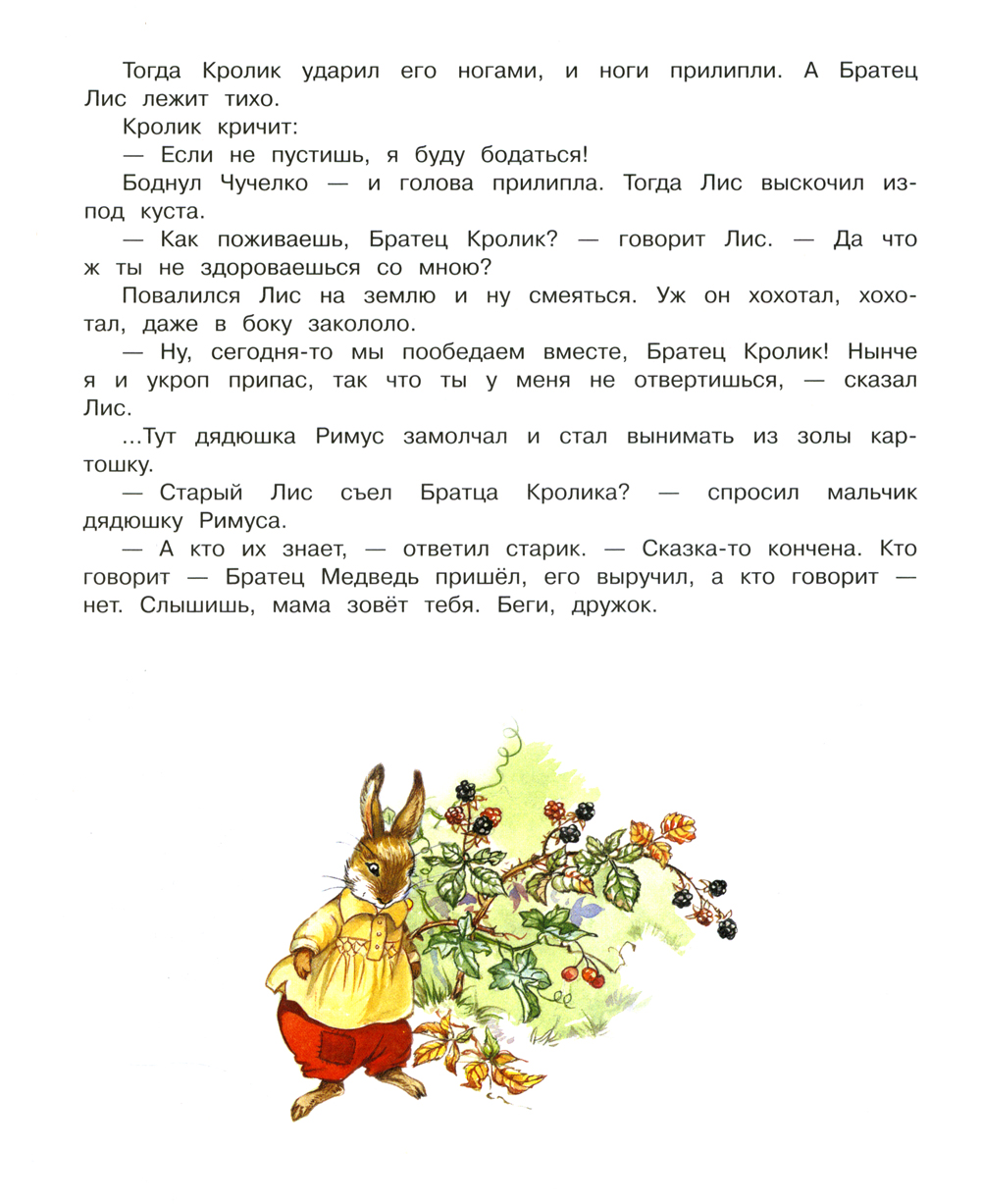 Что бы не придумал коварный Братец Лис, находчивый Братец Кролик всегда нарушает его планы. Что и говорить, этот длинноухий пройдоха хоть и мал, да удал. Недаром юный Джоэль с таким интересом каждый вечер бежит к дядюшке Римусу, чтобы послушать про Братца Кролика и его приятелей. В сборник вошли сказки в пересказе Михаила Гершензона и Ирины Чистяковой. Особую прелесть книге придают красочные и выразительные иллюстрации знаменитой английской художницы Рене Клок. Книга для детей младшего школьного возраста.| Издательство | Стрекоза |
