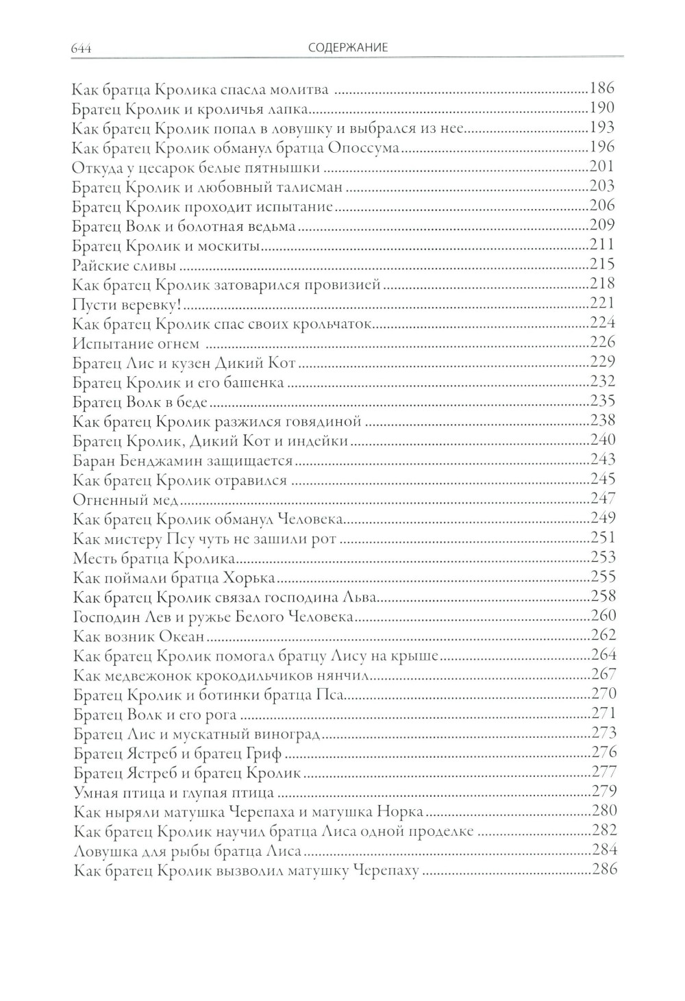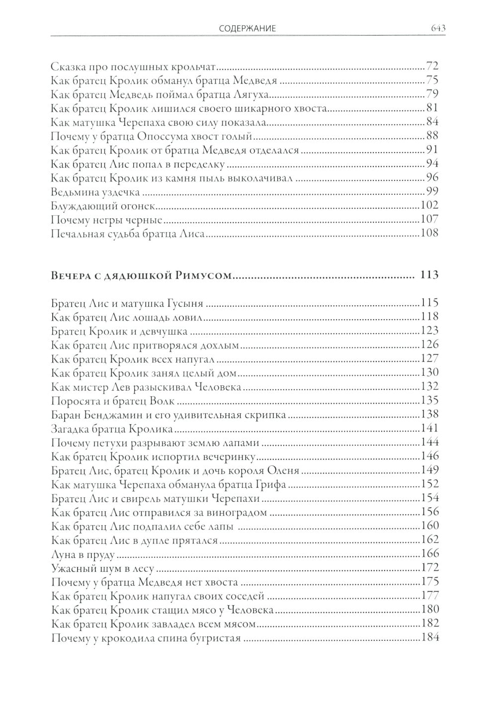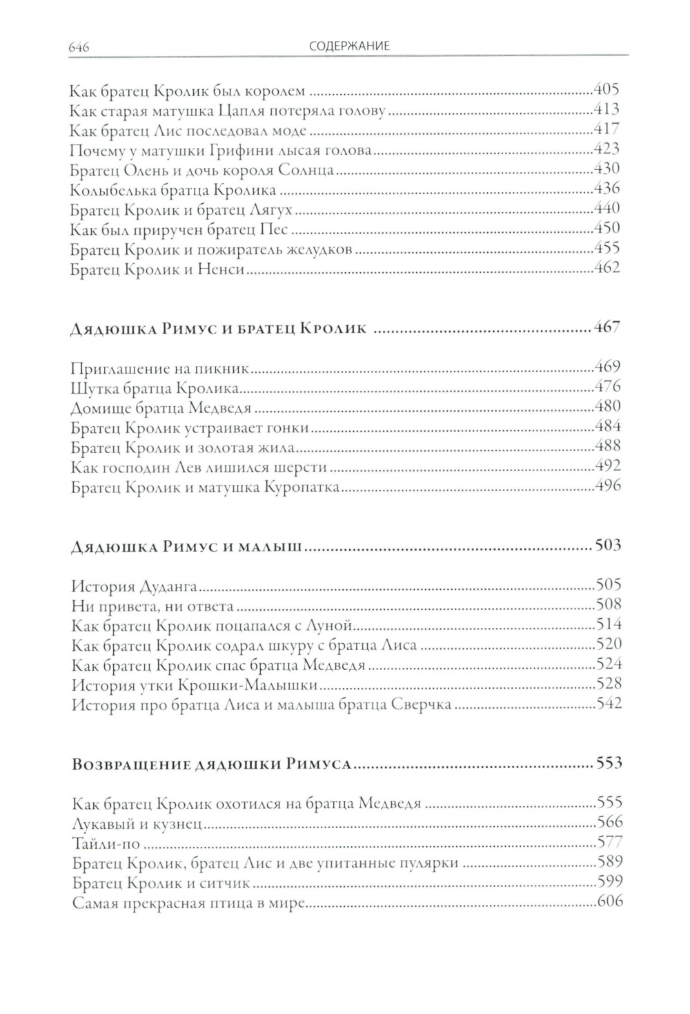 Книга включает все семь сборников сказок про дядюшку Римуса, братца Кролика, братца Лиса и других персонажей, придуманных американским писателем и фольклористом XIX века Джоэлем Чандлером Харрисом. Все сто шестьдесят восемь сказок даны в переводе С. Ю. Афонькина. Большинство из них публикуются на русском языке впервые. Издание украшено множеством рисунков, выполненных тремя художниками - А. Б. Фростом, Дж. М. Конде и Ф. Вер Беком.| Издательство | СЗКЭО |