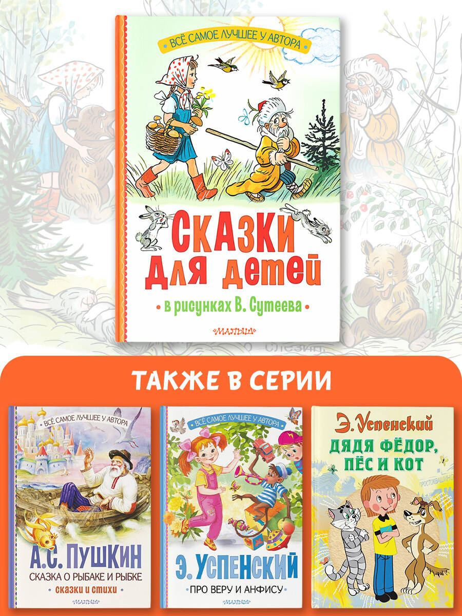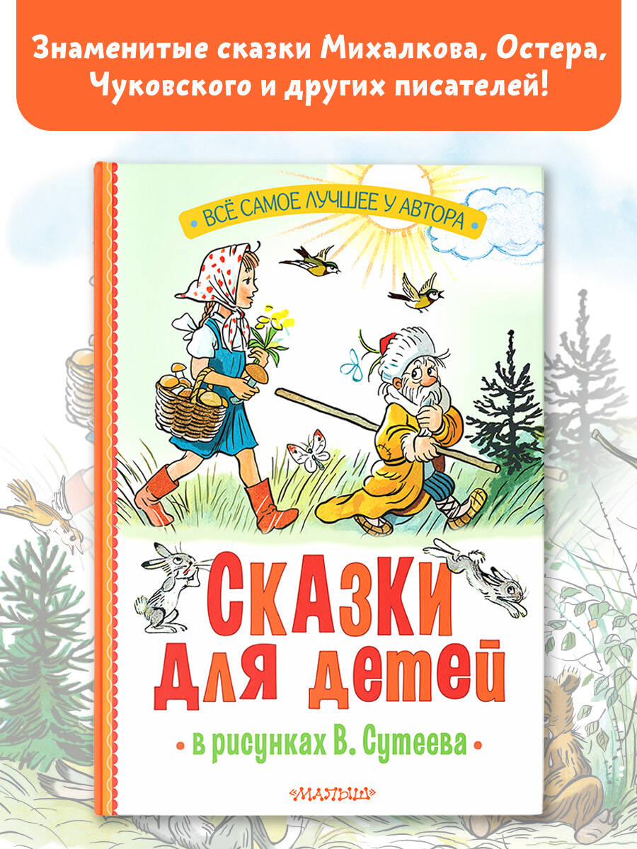 В нашей книжке собраны самые лучшие сказки для детей в рисунках В. Сутеева. Она откроет маленькому читателю волшебный мир, где возможно всё. Модница-лягушка примеряет хвосты, котёнок дружит со щенком, медведи катаются на велосипеде и жуют пряники, а в январе расцветают ромашки! Все эти и другие сказки написали для ребят знаменитые писатели-классики - С. Михалков, Г. Остер, К. Чуковский и другие. Скорее открывай книжку!