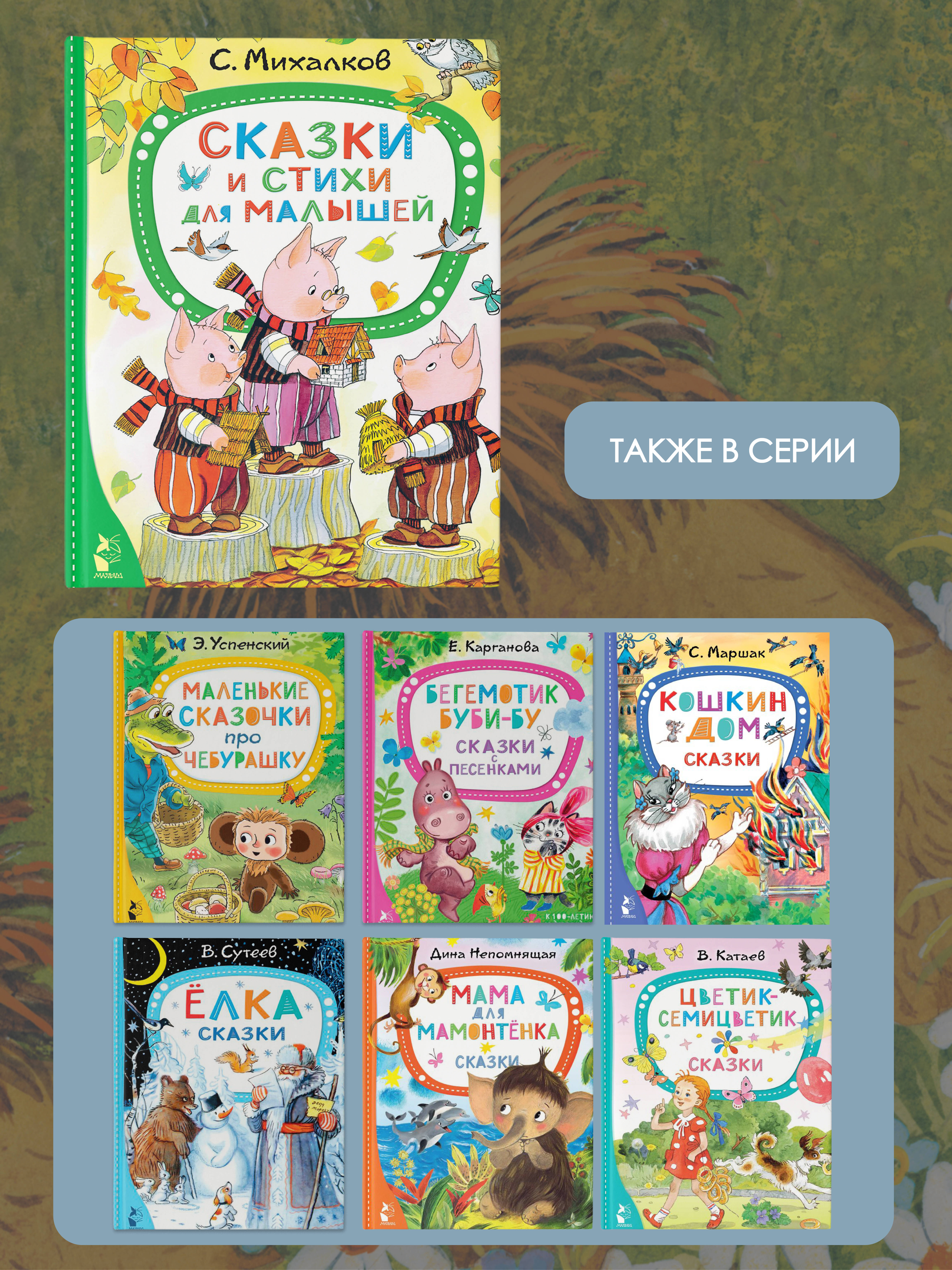 Самые знаменитые стихи и сказки Сергея Михалкова ждут малышей в этой большой и красивой книге! Мальчики и девочки познакомятся с котятами и попробуют их посчитать, споют весёлую «Песенку друзей», отгадают загадки, а потом придут в гости к трём хорошеньким поросятам и другим известным героям. В этом сборнике есть считалочки, загадки, песенки, стихи, сказки и большие цветные картинки - всё, что нужно, чтобы порадовать мальчиков и девочек, их родителей, бабушек и дедушек!| Издательство | ИЗДАТЕЛЬСТВО "АСТ" |