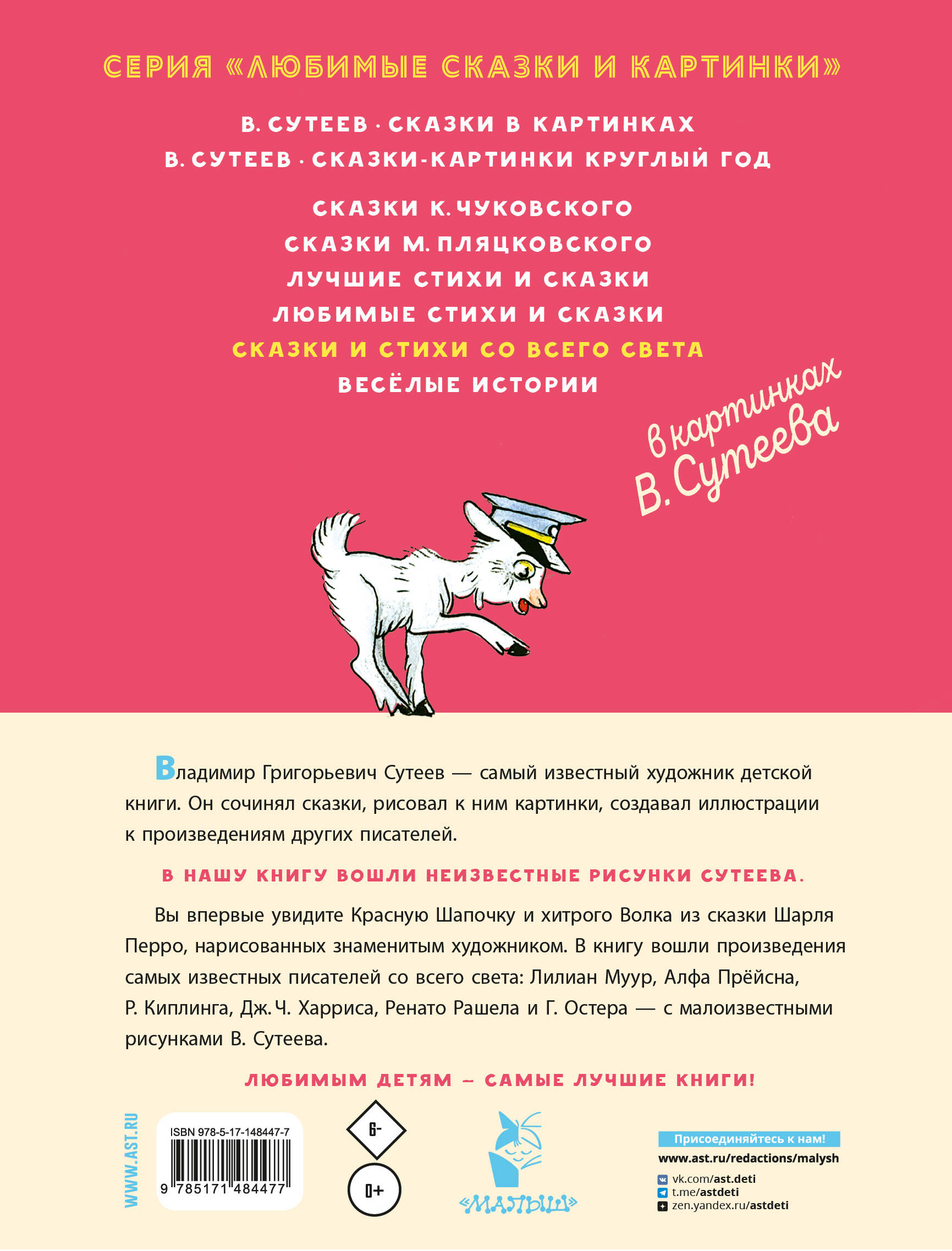 Серия «Любимые сказки и картинки» посвящена творчеству художника-сказочника, режиссёра-мультипликатора, Заслуженного деятеля искусств РСФСР Владимира Григорьевича Сутеева. На его сказках и картинках выросло несколько поколений читателей. В нашу книгу вошли неизвестные рисунки Сутеева. Вы впервые увидите Красную Шапочку и хитрого Волка из сказки Шарля Перро, нарисованных знаменитым художником. В книгу вошли произведения самых известных писателей со всего света: Лилиан Муур, Альфа Прёйсна, Р. Киплинга, Дж. Ч. Харриса, Ренато Рашела и Г. Остера - с малоизвестными рисунками В. Сутеева. Любимым детям - самые лучшие книги!| Издательство | АСТ |