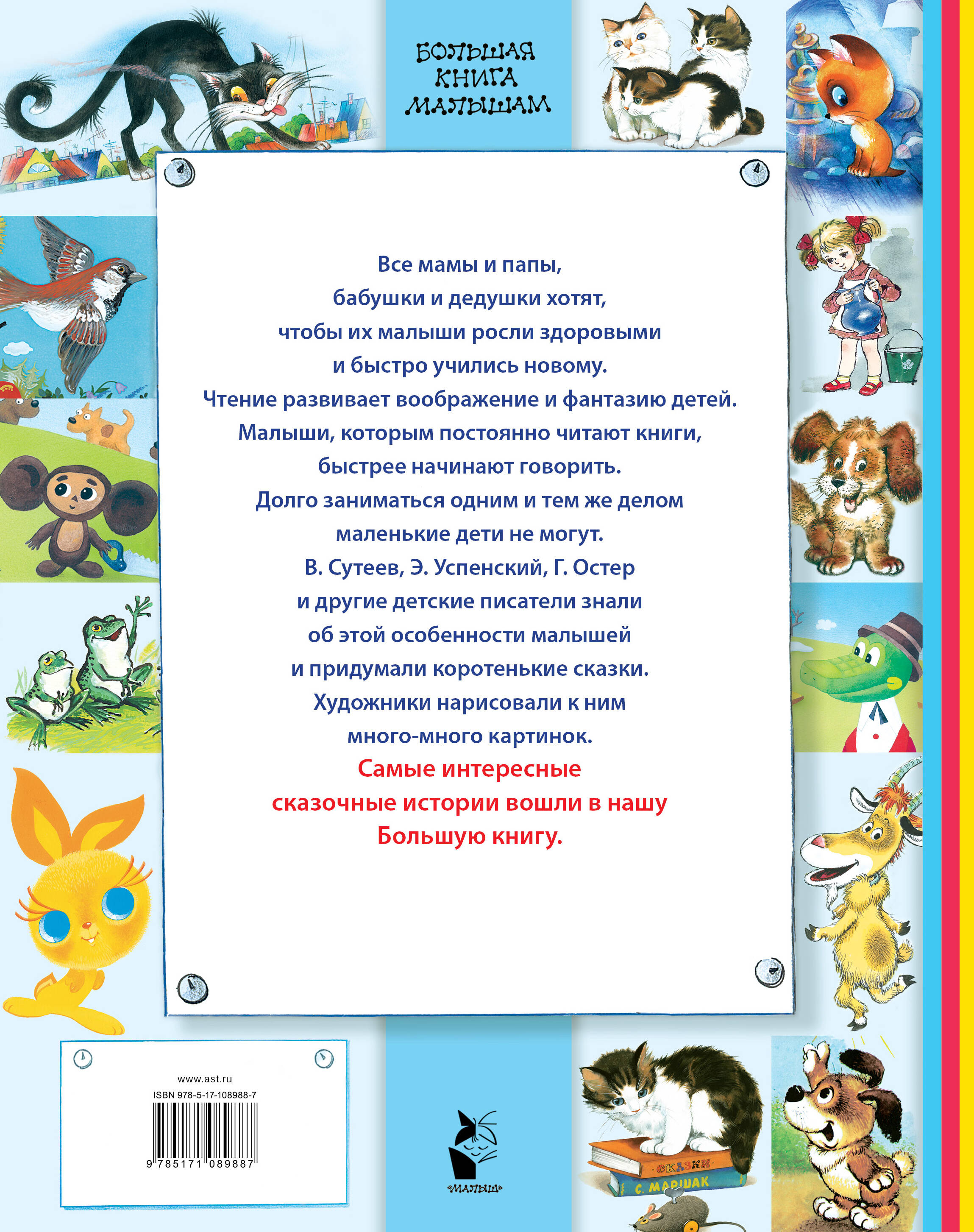 Большие книжки с яркими картинками привлекают любознательных малышей. Детям хочется поскорее открыть и рассмотреть всё-всё в мельчайших подробностях. Увидеть любимых героев - Крокодила Гену, Чебурашку и Котёнка по имени Гав. "Сказки-малютки" именно такая книжка. В ней очень много маленьких сказок Э. Успенского, Г. Остера, С. Михалкова и других детских писателей. Сказочные истории не дадут маленьким детям заскучать, развеселят и научат дружбе и взаимопомощи. Для дошкольного возраста.| Издательство | Издательство "АСТ" |