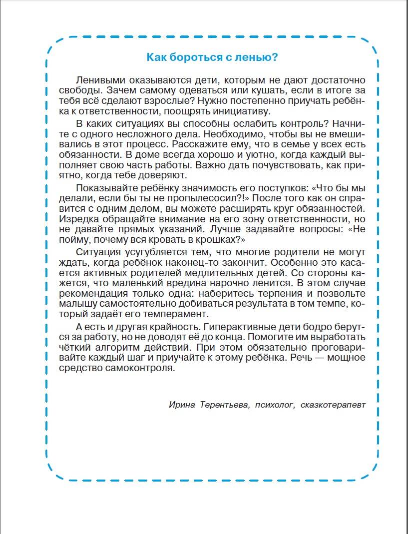 Малыш не хочет одеваться самостоятельно? Комната завалена игрушками, а прогулка превращается в бесконечные просьбы «возьми меня на ручки»? С этой проблемой можно справиться без истерик и капризов с помощью книги «Сказки от лени». Опытный психолог и сказкотерапевт Ирина Терентьева подскажет, что делать с маленькими нехочухами. В книге собраны сказки любимых отечественных авторов Э. Успенского, С. Прокофьевой и др., герои которых покажут, как хорошо быть трудолюбивым и аккуратным. Специальные вопросы к сказкам помогут найти общий язык с вашим сыном или дочкой. Читайте с пользой и удовольствием!