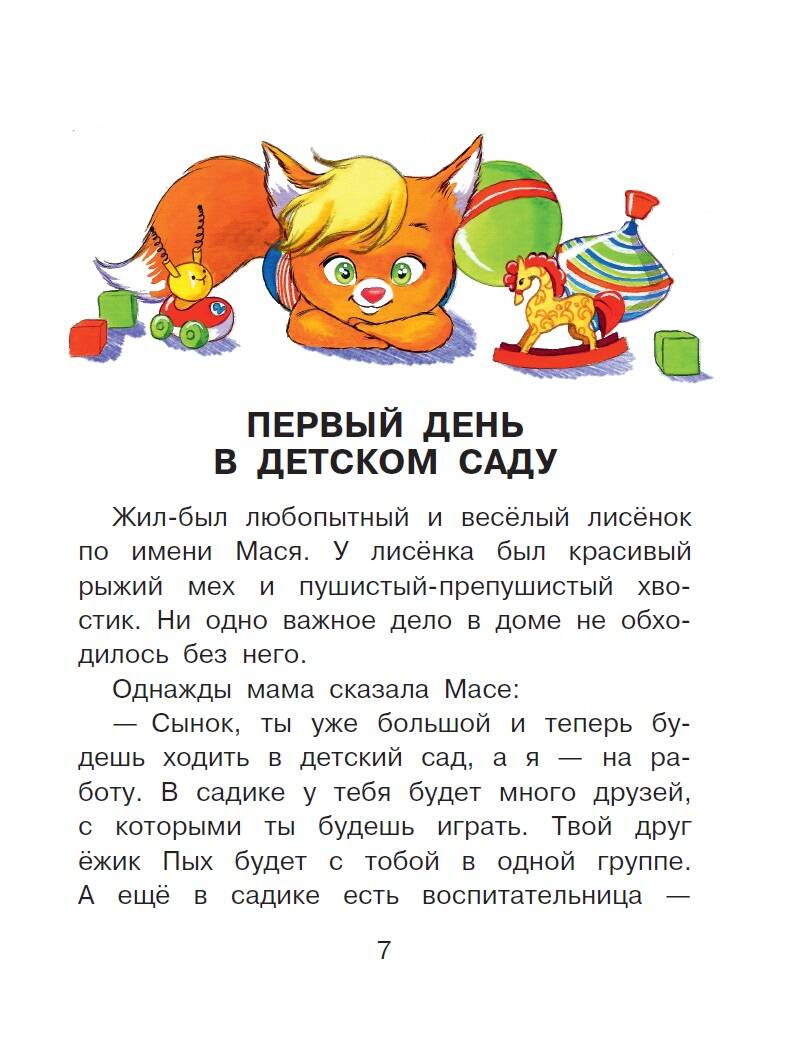 Как подготовить малыша к детскому саду? Как помочь ему адаптироваться без слёз и капризов? Увлекательные сказки про милого лисёнка Масю от детского психолога и сказкотерапевта Ирины Терентьевой помогут малышу справиться с этим новым периодом своей жизни. Вместе с добрыми персонажами малыш узнает о правилах и распорядке дня в детском саду, о том, как заводить друзей и как не скучать без мамы. Совместный досуг и чтение с ребёнком помогут познакомиться с окружающим миром, развить внимание, воображение и полюбить чтение. Слушая истории и рассматривая красочные иллюстрации, малыш сможет ассоциировать себя с главным героем, вместе с ним проживать ситуации и искать решения. Развитый эмоциональный интеллект - залог успешного будущего. Подарите добрые сказки своему малышу! Целых 64 плотных и ярких страницы для гармоничного развития!| Издательство | ИЗДАТЕЛЬСТВО "АСТ" |