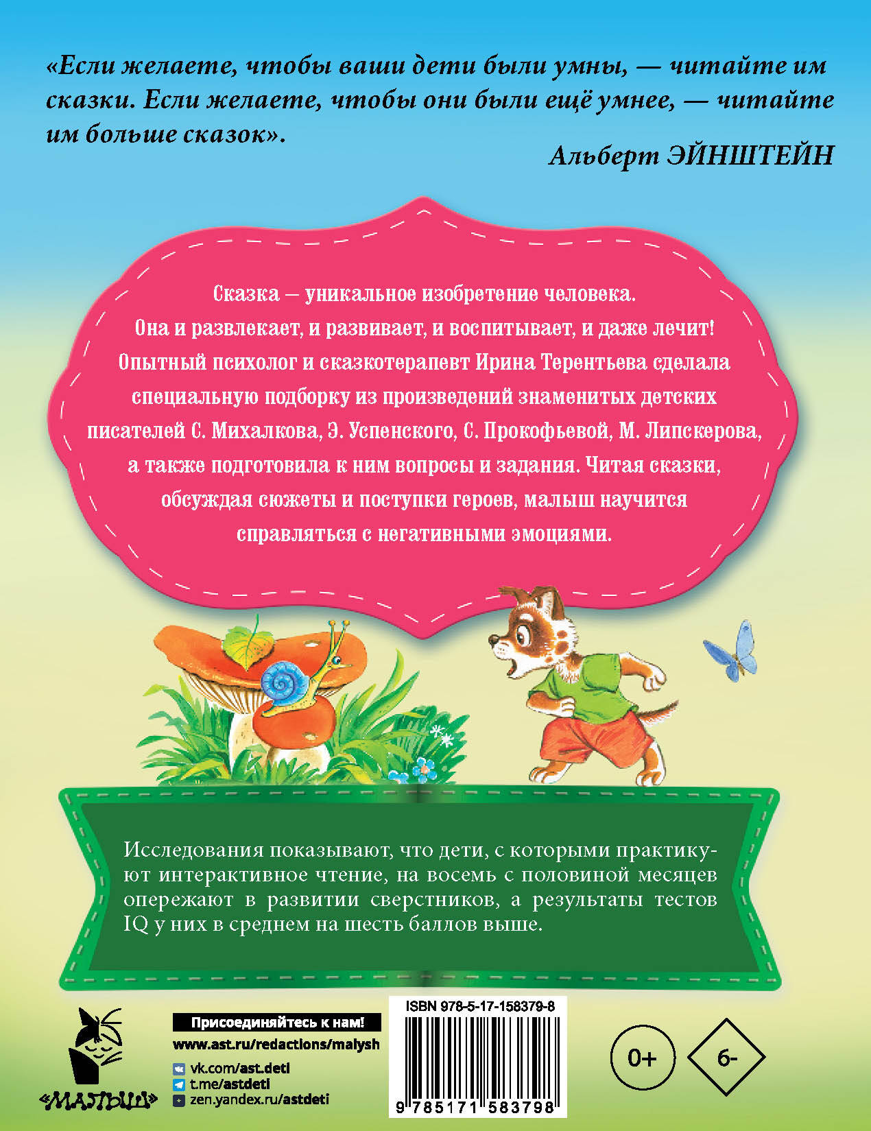 Ваш малыш часто злится и лезет в драку? Ему трудно контролировать свои эмоции и общаться со сверстниками? Наша книга поможет вам найти путь к решению этих проблем. Слушая сказки любимых детских писателей, малыш сможет ассоциировать себя с главным героем, вместе с ним проживать ситуации и искать решения. Развитый эмоциональный интеллект - залог успешного будущего! Специальные вопросы для обсуждения, которые составила опытный психолог Ирина Терентьева, позволят вам построить доверительную беседу с ребенком и помогут ему обрести уверенность в себе. Читайте с пользой и удовольствием!