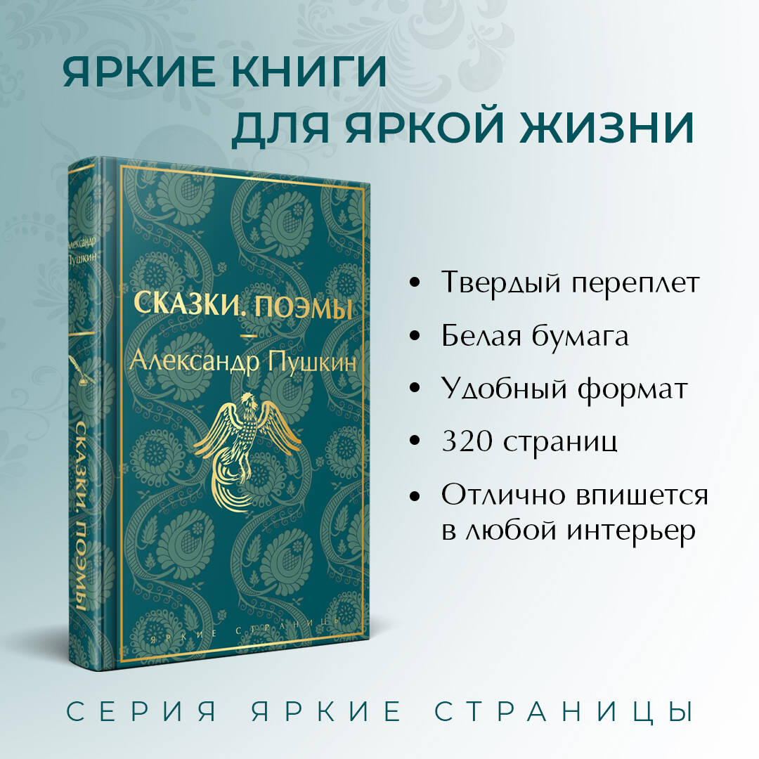 Александр Сергеевич Пушкин настолько мастерски переработал народные предания, которые рассказывала ему в детстве любимая няня Арина Родионовна, что они сами теперь передаются из уст в уста. Мудрые, красочные и оригинальные - они переносят нас в мир русской сказки, где верность и добродетель всегда побеждают злобу и гордыню. Кроме сказок в книге также собраны самые известные поэмы Пушкина, которые перенесут вас на живописные склоны Кавказских гор, под своды бахчисарайского дворца и на берега бушующей Невы... Дизайн этого лимитированного издания серии «Яркие страницы» вдохновлен творчеством Ивана Яковлевича Билибина (1876-1942).| Издательство | ООО "Издательство "Эксмо" |