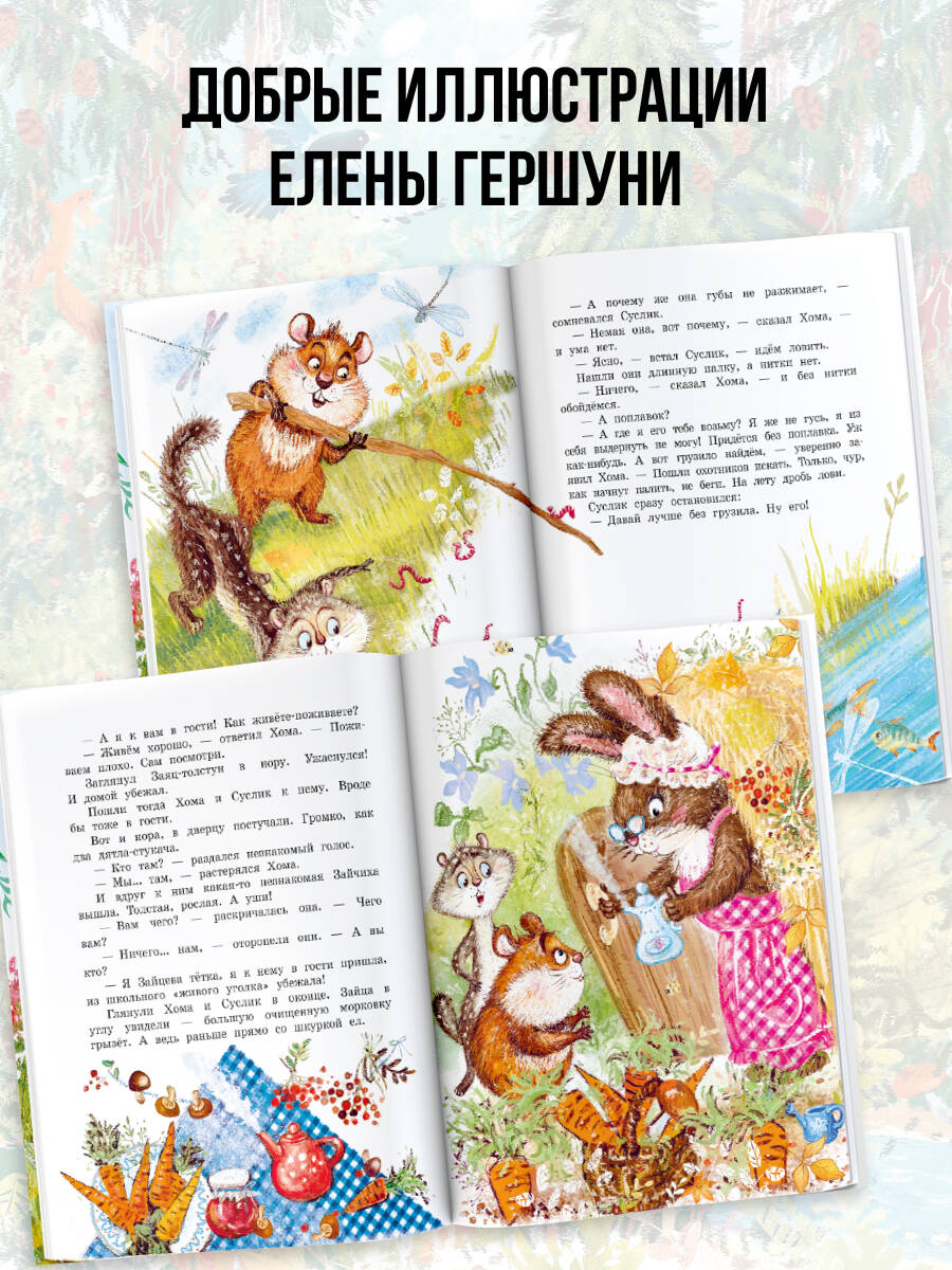 Детский писатель Альберт Иванов в 1975 году написал первые сказки о двух маленьких друзьях, Хоме и Суслике. Приключения полевых зверят покорили сердца читателей своим юмором - хитренький Хома и доверчивый Суслик часто ссорятся, но всегда спасают друг друга от Лисы, делятся едой в голодные дни и совсем не могут жить в разлуке. Яркие иллюстрации создала художница Елена Гершуни.| Издательство | Издательство "АСТ" |