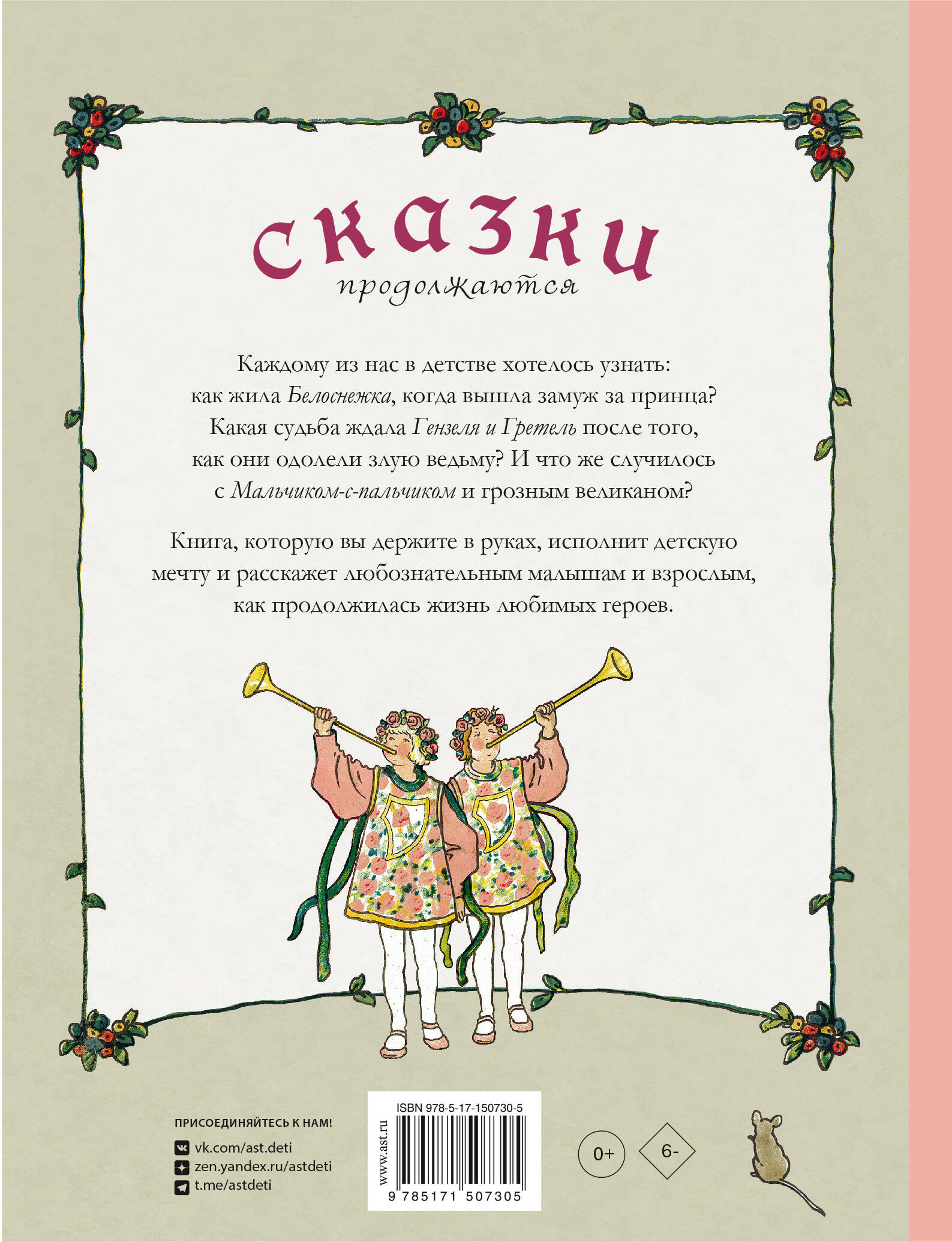 Каждому из нас в детстве хотелось узнать: как жила Белоснежка, когда вышла замуж за принца? Какая судьба ждала Гензеля и Гретель после того, как они одолели злую ведьму? И что же случилось с Мальчиком-с-пальчиком и грозным великаном? Книга, которую вы держите в руках, исполнит детскую мечту и расскажет любознательным малышам и взрослым, как продолжилась жизнь любимых героев.| Издательство | ИЗДАТЕЛЬСТВО "АСТ" |