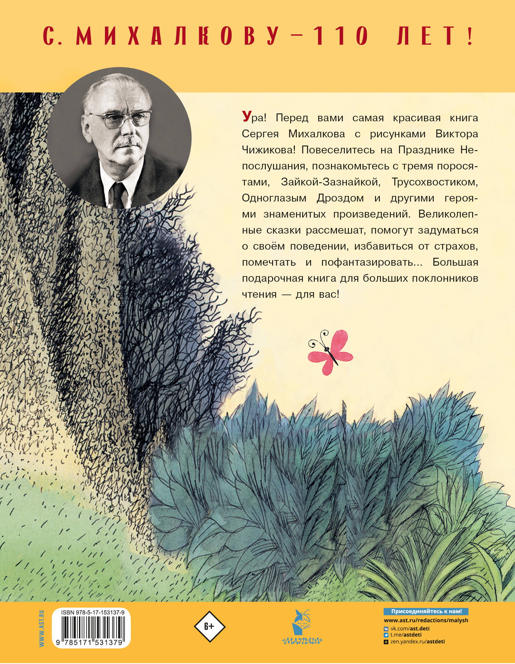Ура! Перед вами самая красивая книга Сергея Михалкова с рисунками Виктора Чижикова! Повеселитесь на Празднике Непослушания, познакомьтесь с тремя поросятами, Зайкой-Зазнайкой, Трусохвостиком, Одноглазым Дроздом и другими героями знаменитых произведений. Великолепные сказки рассмешат, помогут задуматься о своём поведении, избавиться от страхов, помечтать и пофантазировать… Большая подарочная книга для больших поклонников чтения - для вас!| Издательство | ИЗДАТЕЛЬСТВО "АСТ" |