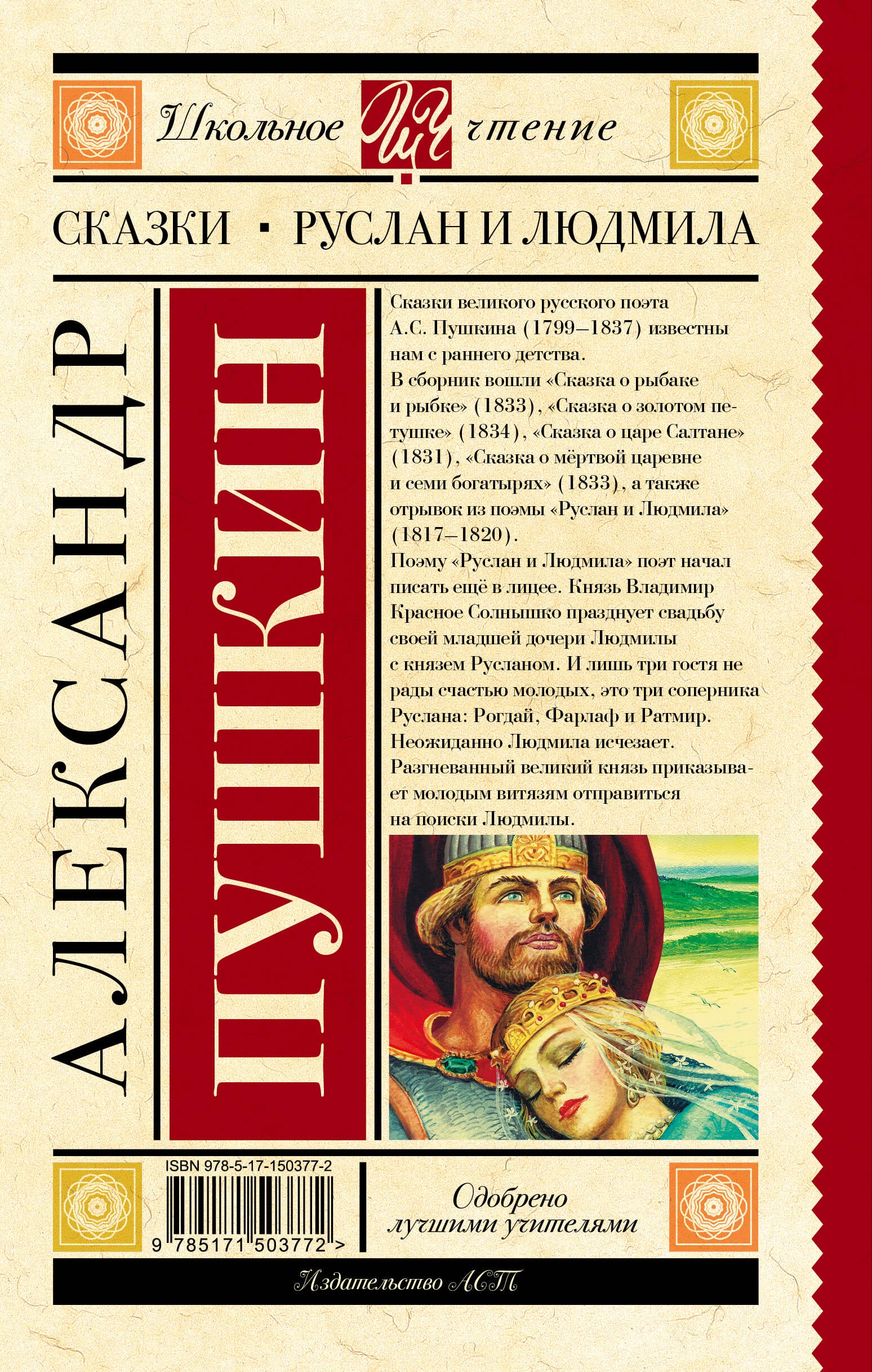 Сказки великого русского поэта А.С. Пушкина (1799-1837) известны нам с раннего детства. В сборник вошли "Сказка о рыбаке и рыбке" (1833), "Сказка о золотом петушке" (1834), "Сказка о царе Салтане" (1831), "Сказка о мёртвой царевне и семи богатырях" (1833), а также отрывок из поэмы "Руслан и Людмила" (1817-1820). Поэму "Руслан и Людмила" поэт начал писать ещё в лицее. Князь Владимир Красное Солнышко празднует свадьбу своей младшей дочери Людмилы с князем Русланом. И лишь три гостя не рады счастью молодых, это три соперника Руслана: Рогдай, Фарлаф и Ратмир. Неожиданно Людмила исчезает. Разгневанный великий книзь приказывает молодым витязям отправиться на поиски Людмилы.| Издательство | АСТ |