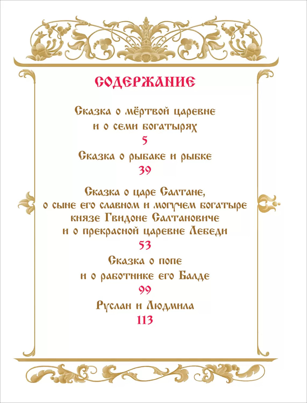 Издание любимых сказок великого русского писателя и поэта Александра Сергеевича Пушкина в подарочном оформлении: плотная качественная бумага, уникальный цветной узор на обрезе, атмосферные красочные иллюстрации знаменитого художника Владимира Ненова. Произведения Александра Сергеевича входят в золотой фонд русской художественной литературы. Именно с них начинают свое знакомство с книгой миллионы российских детей при подготовке к школе. В книгу вошли: • «Сказка о мертвой царевне и о семи богатырях»; • «Сказка о рыбаке и рыбке» • «Сказка о царе Салтане...»; • «Сказка о попе и о работнике его Балде»; • Поэма «Руслан и Людмила». Мудрые, самобытные, пронизанные юмором сюжеты учат детей правилам хорошего тона, нормам этики и морали, помогают развить воображение и привить любовь к чтению с самых ранних лет. Сказки Пушкина - прекрасный и полезный подарок ребенку на Новый год и на день Рождения. Они познакомят мальчиков и девочек с культурным наследием страны, пригодятся в учебе, а также украсят домашнюю библиотеку.
