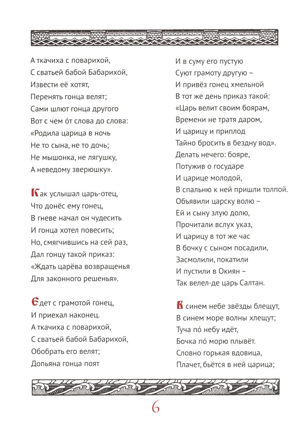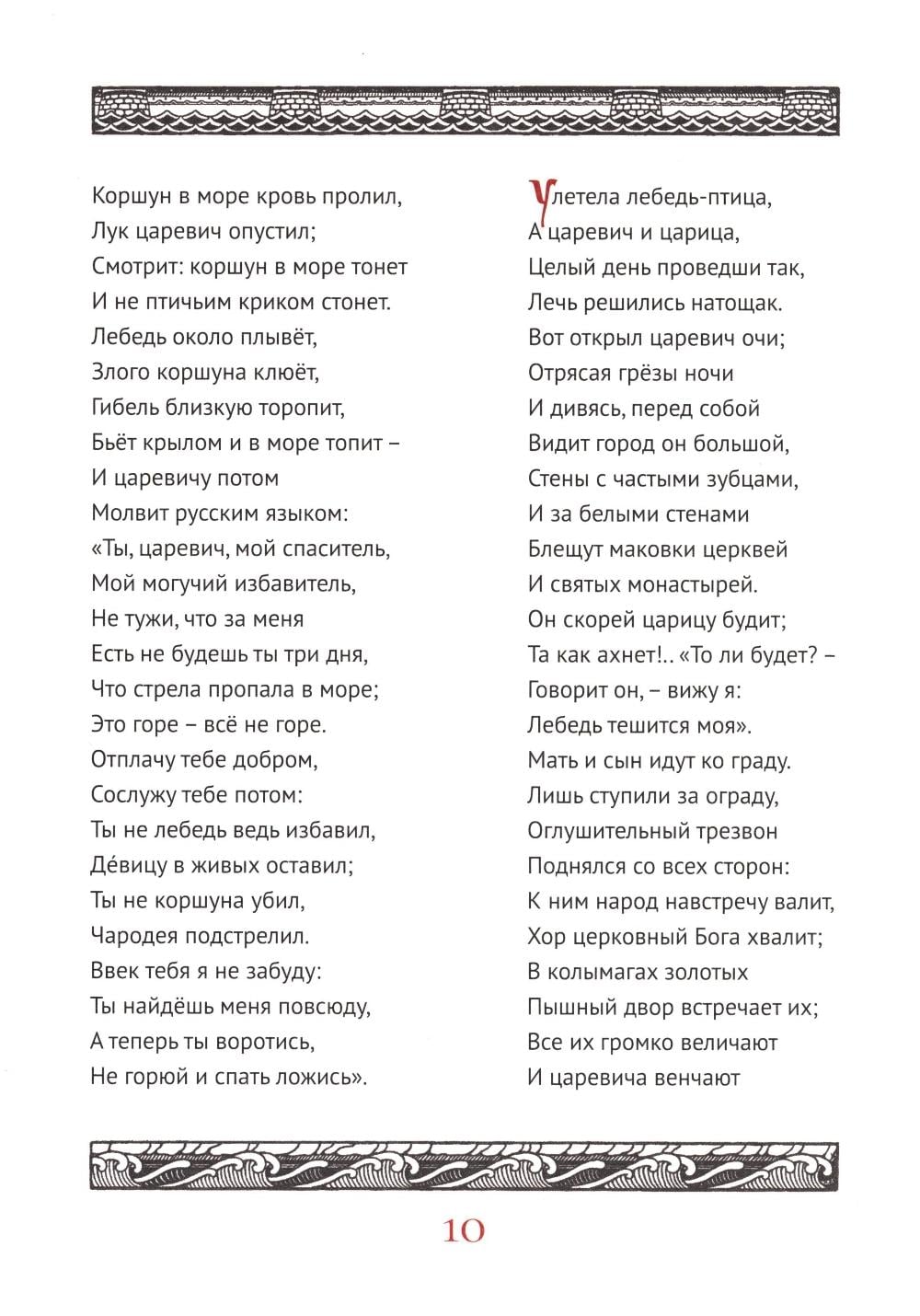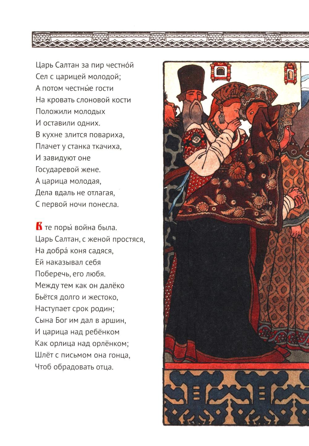 Два лучших произведения из поэтического цикла по мотивам русских фольклорных сюжетов - «Сказка о царе Салтане» и "Сказка о золотом петушке«-можно назвать вершиной переосмысления великим поэтом устного народного творчества. Мастерски стилизуя слог под плавный ритм просторечного сказания, Пушкин создаёт живые истории, где находят своё место и яркие герои, и великолепие зрительных образов, и непременный «добрым молодцам урок».| Издательство | Феникс |