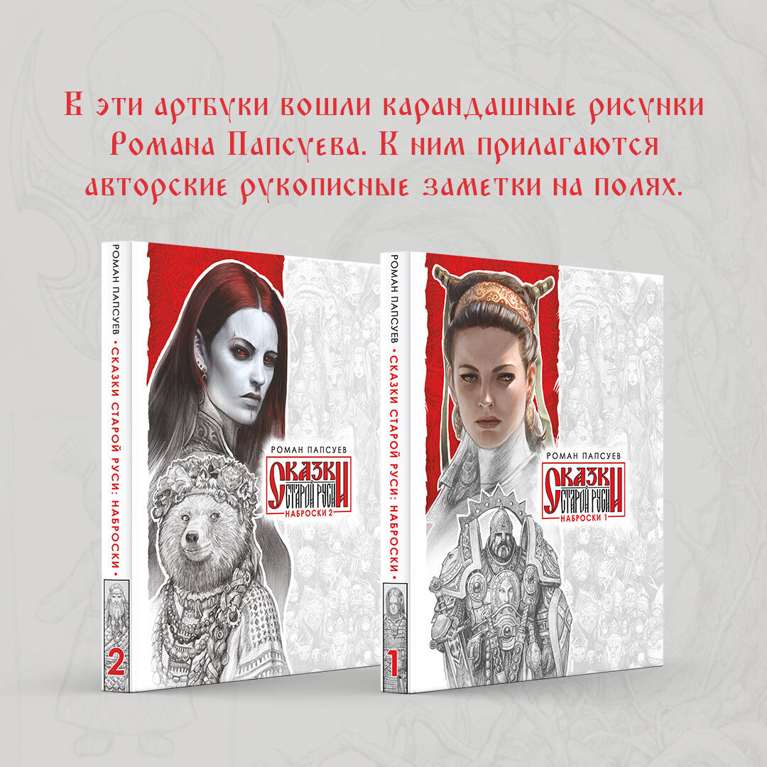 «Сказки Старой Руси» - визуальное переосмысление фольклорных персонажей, которое Роман Папсуев запустил в 2015 г. Так появился волшебный мир Белосветья, где обрели новую жизнь известные сказочные герои и существа славянской мифологии. За 6 лет издано 4 артбука, художественные книги и сувениры. После работы над ними накопилось много набросков, заметок, деталей разработки персонажей. Мы решили издать их отдельным сборником. В него вошли эскизы известных работ Романа Папсуева и много нового: от грубых «почеркушек» и «записок на полях» до детально отрисованных иллюстраций, которые попали в финальные макеты артбуков.| Издательство | ООО "Издательство "Эксмо" |