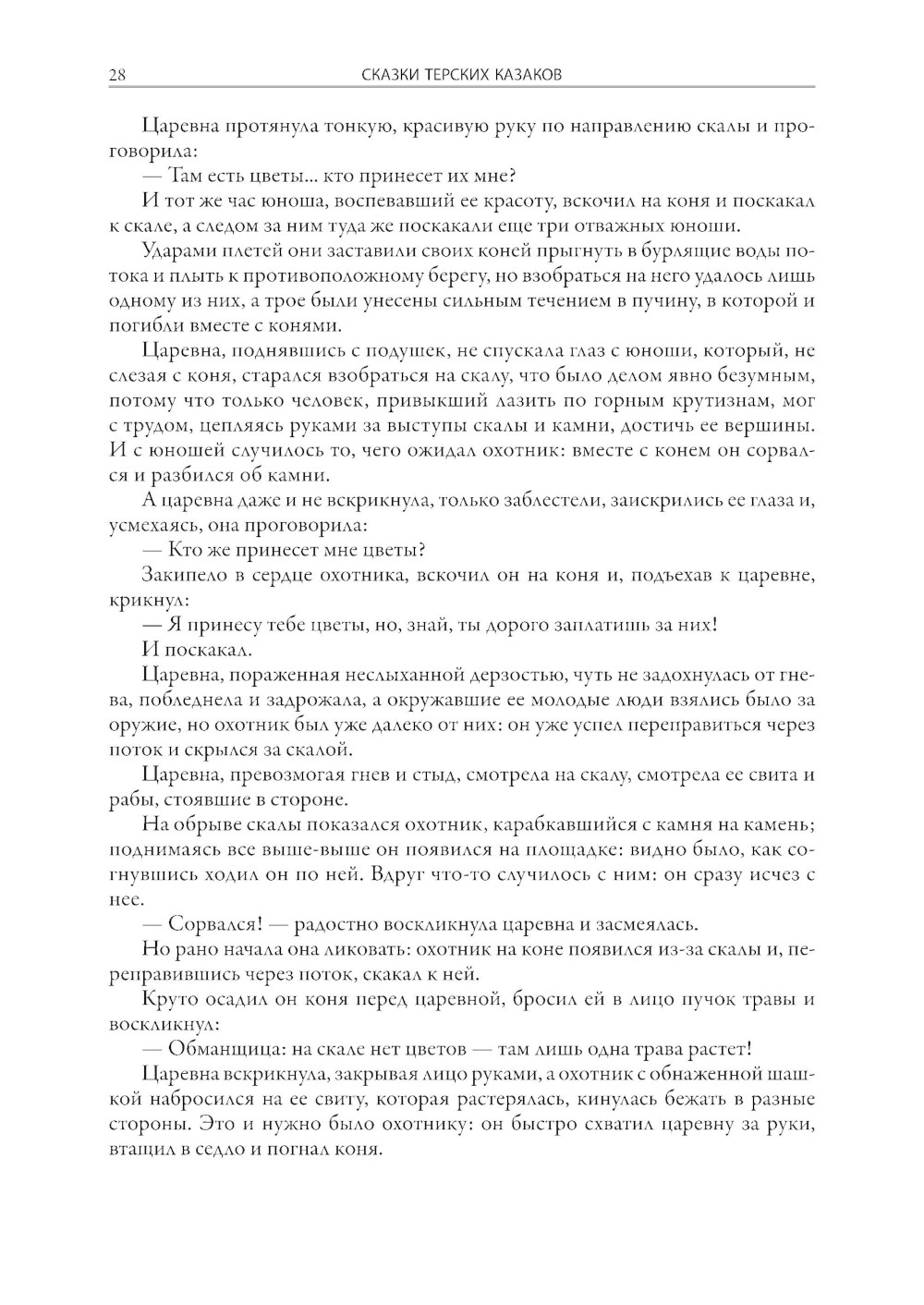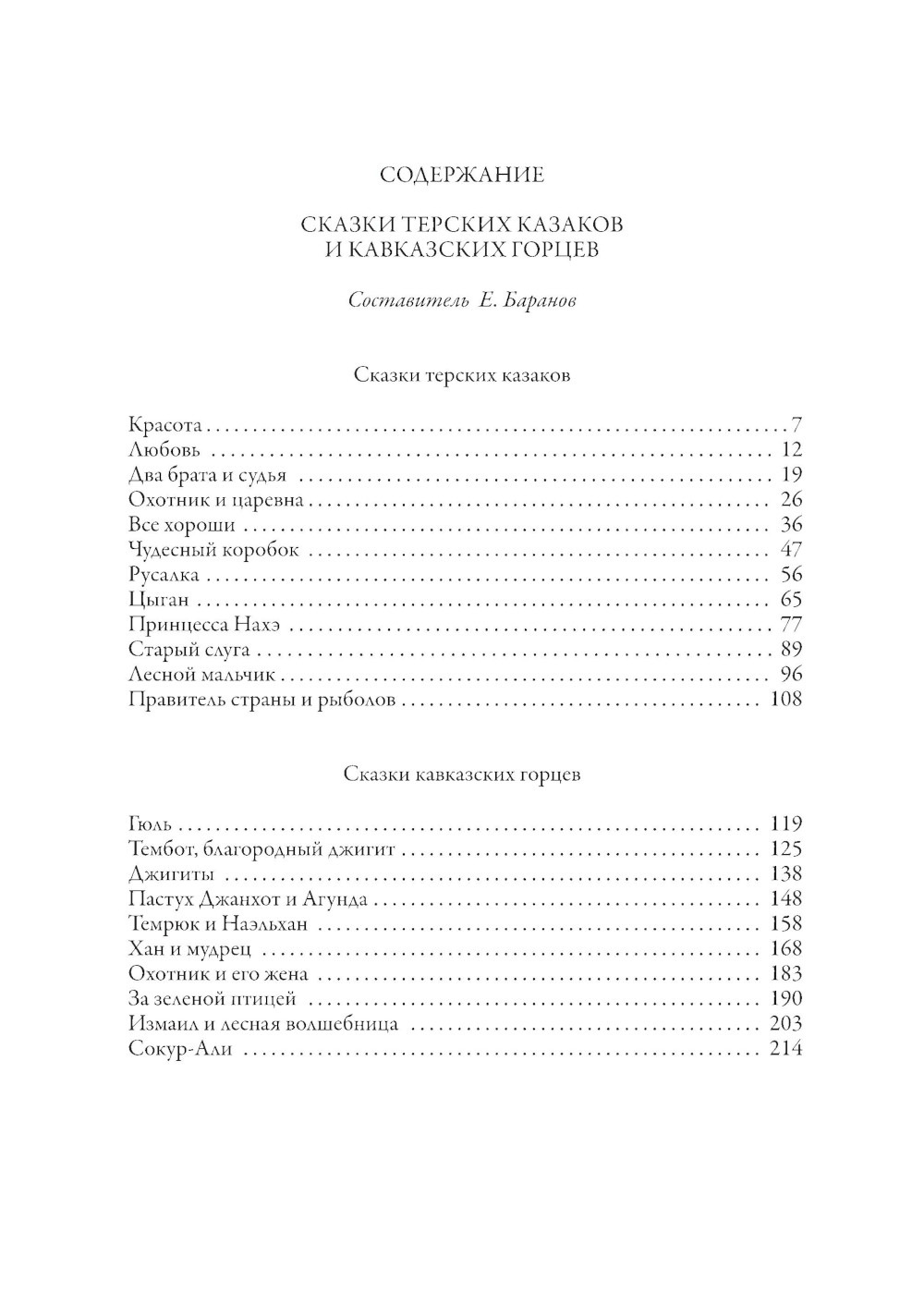 Евгений Захарович Баранов (1869-1934) - русский литератор и собиратель фольклора. Его отец, мелкий торговец, вышел из семьи бывших крепостных. Он много путешествовал по самым дальним уголкам России, а потом осел в Нальчике, где и родился Евгений. После окончания городской школы Евгений, чувствуя тягу к творчеству, поступил в московское Строгановское училище. Однако там молодой человек проучился недолго: через несколько месяцев его арестовали за участие в народовольческом кружке и выслали обратно в Нальчик. С конца 1880-х жизнь Баранова была насыщена событиями. Сменяли друг друга достаток и нищета, литературный труд и физический; Евгений получал и одобрение, и насмешки. Зарабатывал он на жизнь самыми разными способами: работал писарем и корректором, писал статьи для газет и журналов, ходатайствовал по судебным делам, торговал книгами на базаре, мыл посуду в трактирах, собирал картофель, кукурузу и виноград. Среди всех испробованных занятий Евгения Захаровича больше всего привлекало собирание фольклора. Баранов долгое время странствовал по Кавказу, а также бывал на Дону и в Крыму. Во время своих странствий он знакомился с разными людьми, делал заметки об их жизни и обычаях, запоминал легенды и сказки. Услышанные истории он старался записывать так, чтобы они не утратили своей первоначальной самобытности в процессе литературной обработки. В результате длительной кропотливой работы Баранову удалось собрать обширную коллекцию фольклорных материалов. К сожалению, большая ее часть не сохранилась: в 1928 году в квартире литератора произошел пожар, погубивший архивные записи. Однако некоторые тексты Баранов успел опубликовать в журналах, газетах и книгах. Среди них представленные в этом сборнике сказки терских казаков и сказки кавказских горцев. Эти сказки поведают читателям об опасных приключениях и захватывающих событиях, познакомят с невиданными существами и откроют старинные тайны. Их отважные, прекрасные герои запечатлены в дивных рисунках Василия Комарова. Василий Иванович Комаров (1868-1918) - русский живописец и график. Художник родился в одной из деревень Московской губернии в крестьянской семье. Художественное образование он получил сначала в рисовальной школе в Москве, а затем посещал Московское училище живописи, ваяния и зодчества в качестве вольнослушателя. Художник много путешествовал, в том числе по Крыму и Кавказу. В поездках он делал зарисовки, писал жанровые картины и пейзажи. Кроме того, Комаров любил заниматься книжной графикой: он иллюстрировал произведения Н. Гоголя и М. Лермонтова и создал серию иллюстраций к собранным Барановым сказкам.