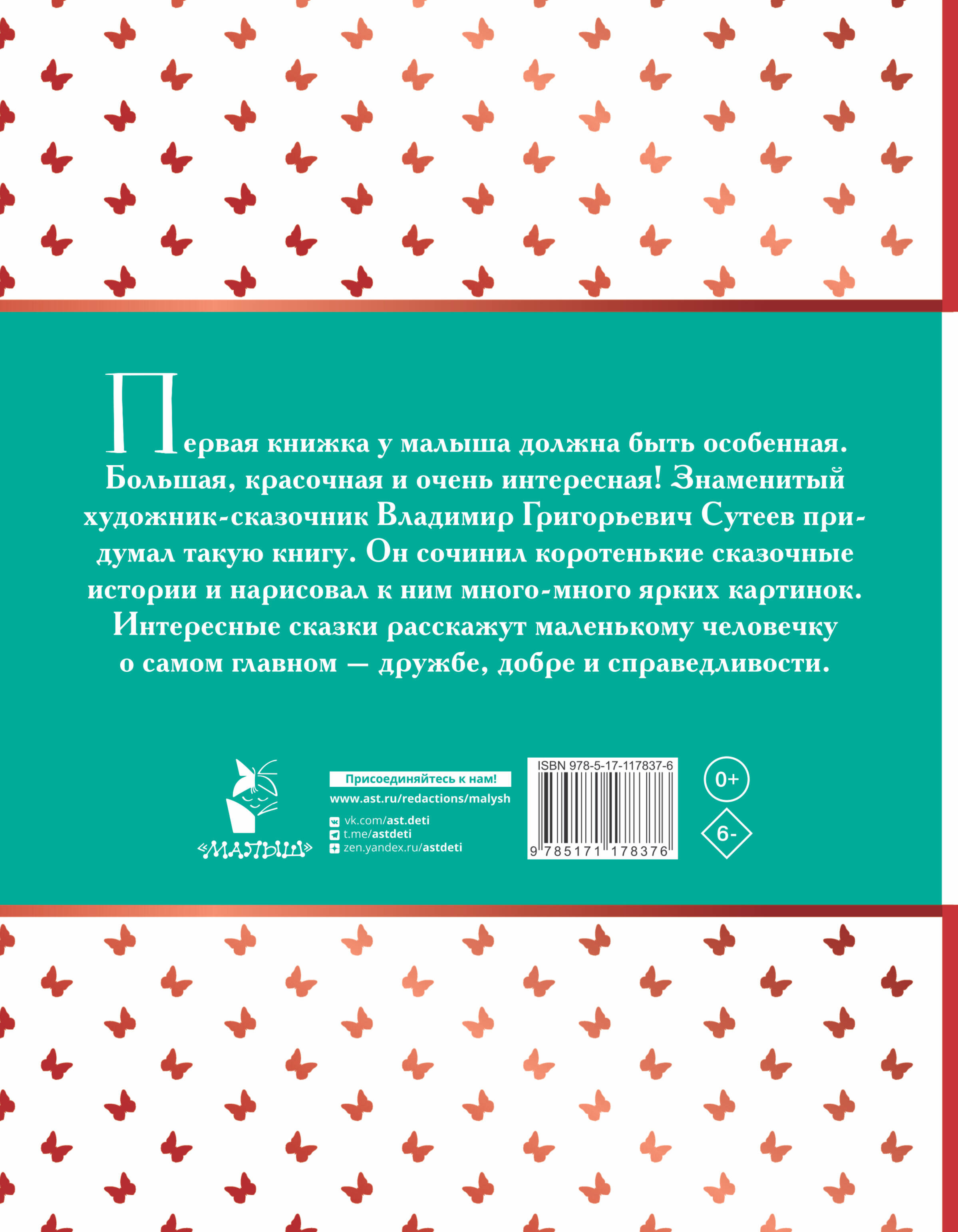 Первая книжка у малыша должна быть особенная. Большая, красочная и очень интересная! Знаменитый художник-сказочник Владимир Григорьевич Сутеев придумал такую книгу. Он сочинил коротенькие сказочные истории и нарисовал к ним много-много ярких картинок. Интересные сказки расскажут маленькому человечку о самом главном - дружбе, добре и справедливости.
