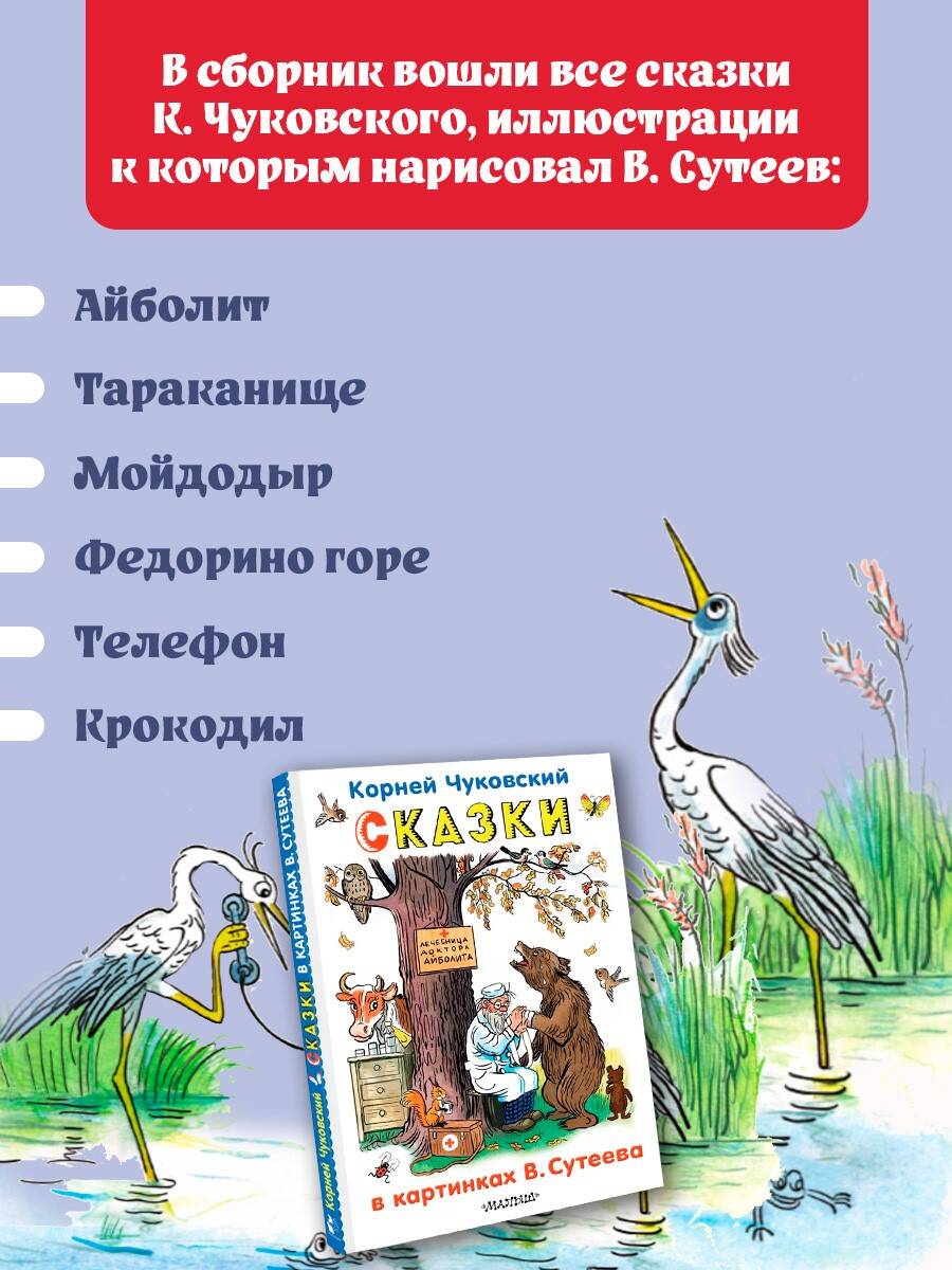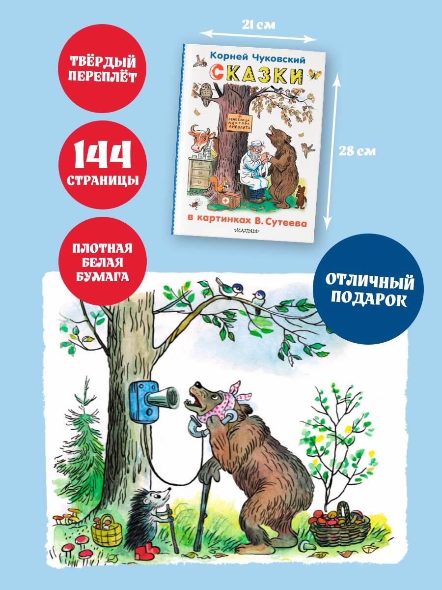 В книгу «Сказки в картинках В. Сутеева» вошли все сказки Корнея Чуковского, иллюстрации к которым нарисовал легендарный художник В. Сутеев. «Мойдодыр», «Айболит», «Тараканище» и другие знаменитые истории увлекут малышей и расскажут о доброте и стремлении помогать, о смелости и о том, как иногда что-то маленькое и незначительное притворяется опасным и грозным.| Издательство | Издательство "АСТ" |