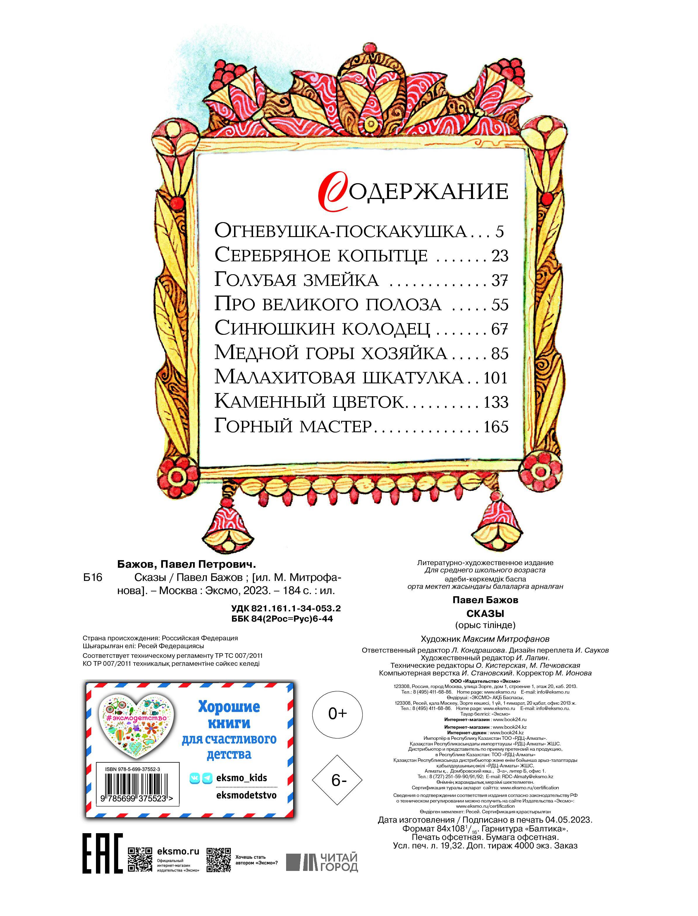 В уральских сказах Павла Бажова оживают камни, открываются пещеры, расцветают каменные цветы, бегают юркие ящерки, превращающиеся в подземную царицу. В сборник вошли сказы «Малахитовая шкатулка», «Горный мастер», «Каменный цветок», «Медной горы Хозяйка», «Серебряное копытце», «Огневушка-поскакушка» и другие. В оформлении рисунками Максима Митрофанова эта книга становится, действительно, самой любимой и волшебной.| Издательство | Эксмо |