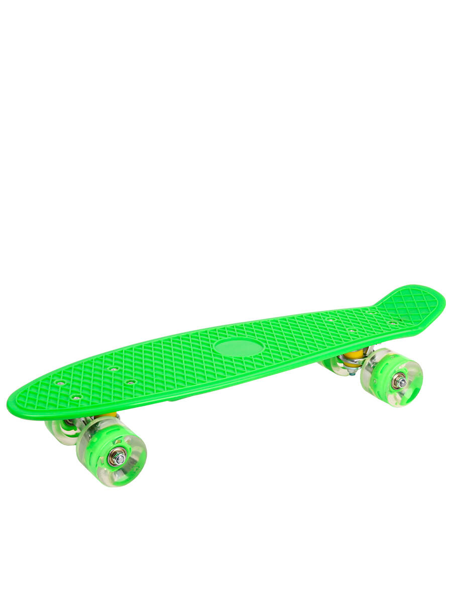 Аннотация: Скейтборд (56х15х10) дека пластик, основа аллюм., колеса ПУ 60мм со светом, зелёный ( Арт. M350-1sG)