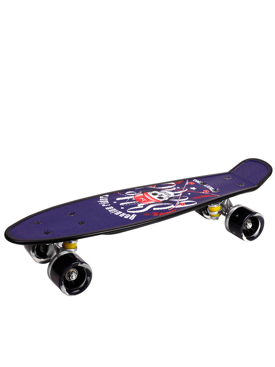 Скейтборд для активного отдыха детей и подростков изготовлен из жёсткого прочного пластика с аллюминиевой основой. Антискользящее покрытие доски позволяет быстрее научиться кататься и освоить трюки. Полиуретановые светящиеся колёса диаметром 60 мм.