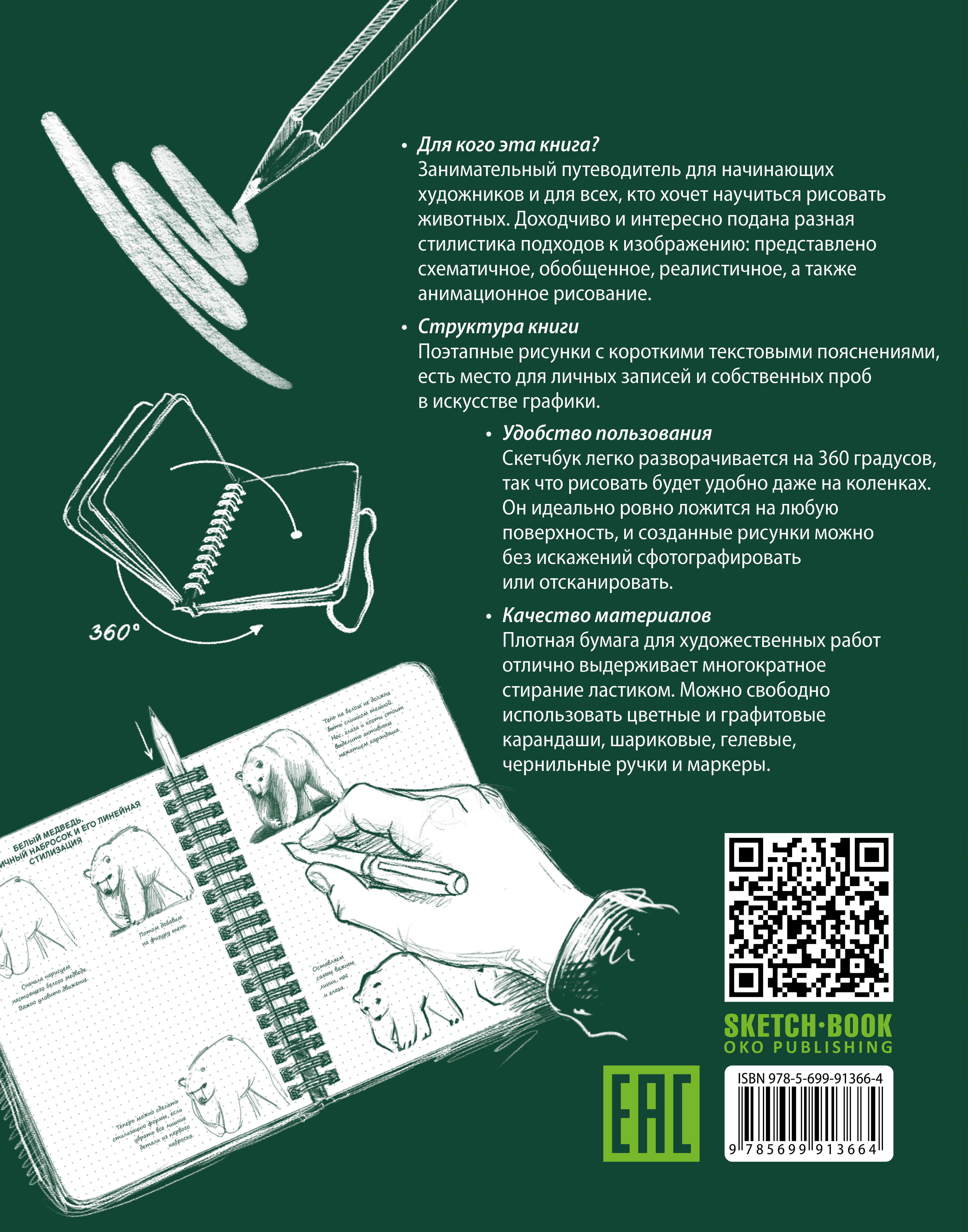 Аннотация: Sketchbook с уроками внутри. Рисуем животных (изумруд)
