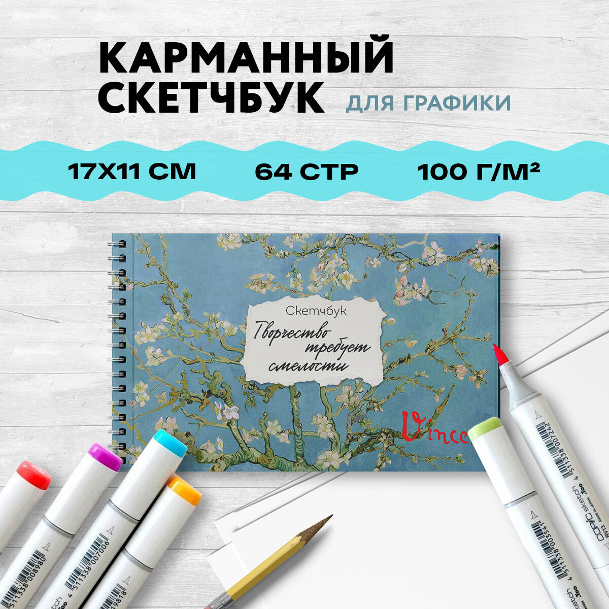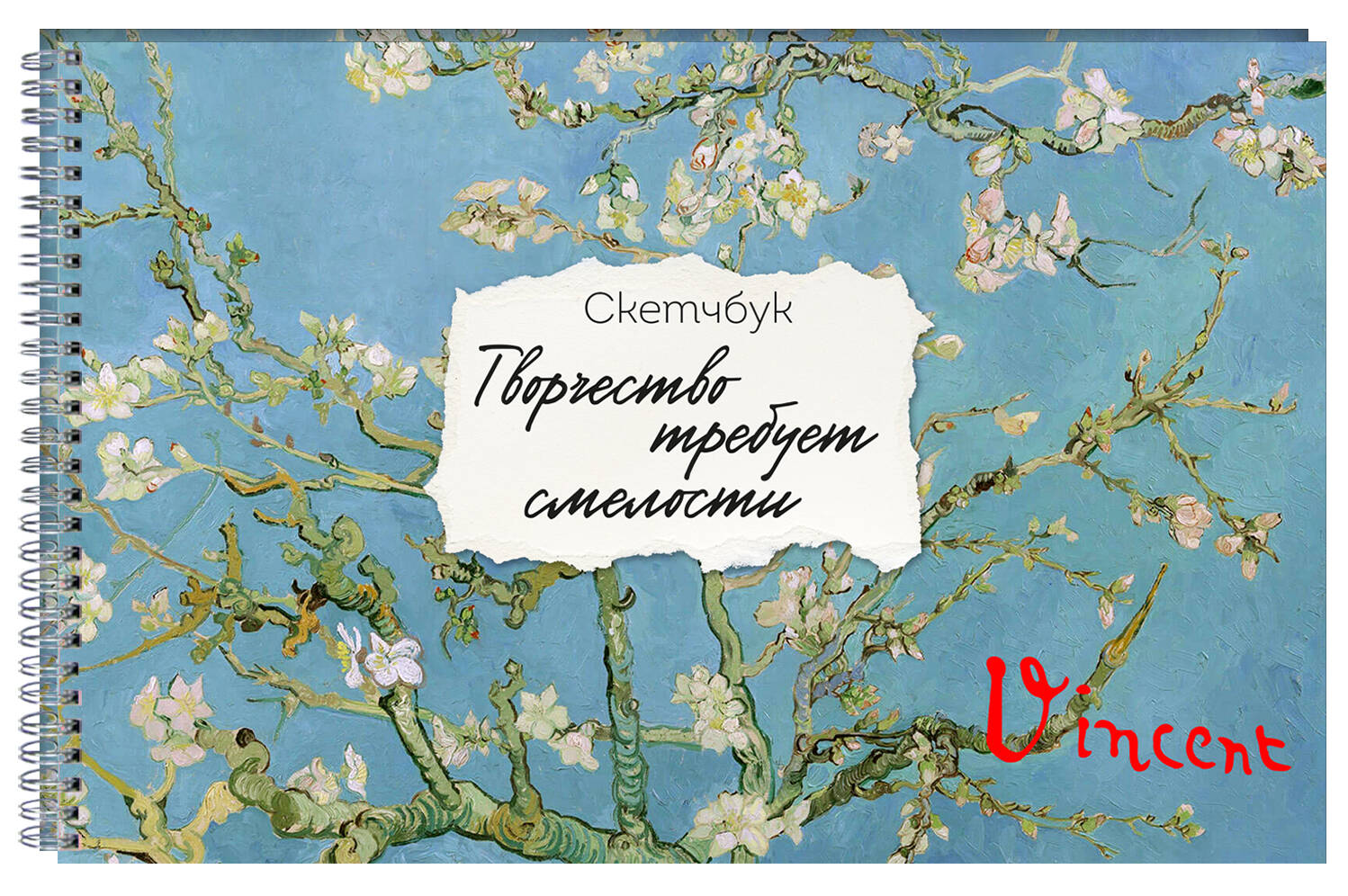 Скетчбук карманный с подложкой. Ван Гог (А6, 32 л., горизонтальный на пружине)
