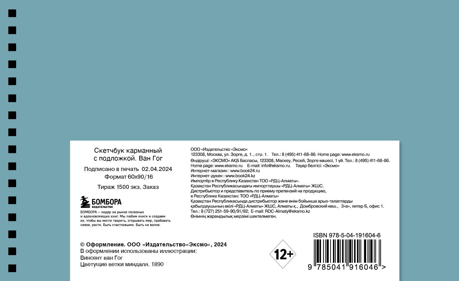 Аннотация: Скетчбук карманный с подложкой. Ван Гог (А6, 32 л., горизонтальный на пружине)