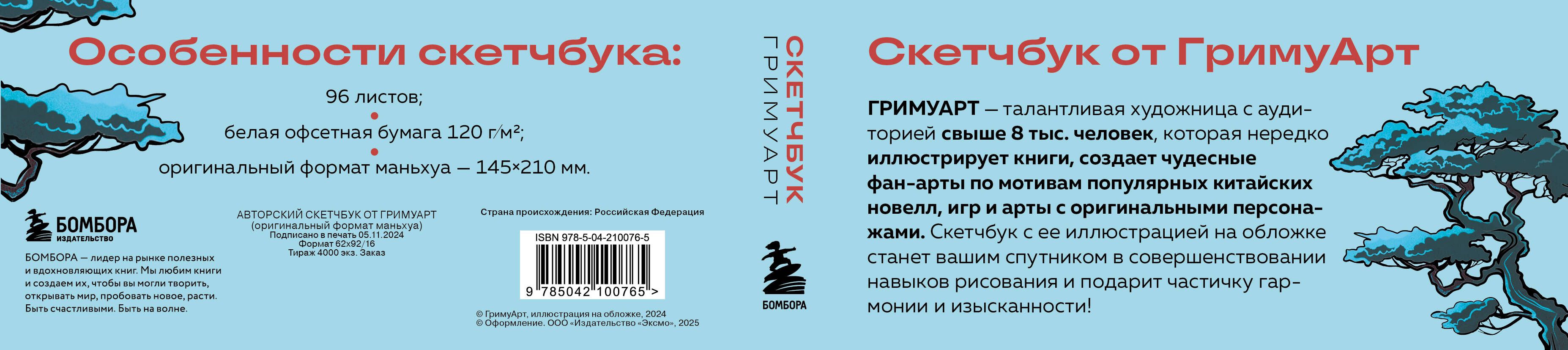Специально для поклонников китайских новелл и маньхуа! Авторский скетчбук от ГримуАрт! Он вдохновит на создание собственной истории, со своими героями и сюжетными линями. ГримуАрт - талантливая художница с аудиторией свыше 8 тыс. человек, которая нередко иллюстрирует книги, создает чудесные фанарты по мотивам популярных китайских новелл, игр и арты с оригинальными персонажами. Ее изящные работы не только вызывают у людей эстетическое наслаждение, но и погружают в хрупкую и мимолетную красоту азиатской культуры. Скетчбук с иллюстрацией художницы на обложке станет вашим спутником в совершенствовании навыков рисования и подарит частичку гармонии и изысканности. Особенности скетчбука: • Обложку украшает иллюстрация с двумя братьями, которые путешествуют по цзянху под покровом ночи и разыскивают таинственный артефакт. • Внутри 96 страниц из белой офсетной бумаги плотностью 120 мг. Можно рисовать и карандашами, и красками, и маркерами - выдержит все! • Скетчбук выполнен в твердом переплете в классическом формате маньхуа (145х210 мм), чтобы вы могли поставить его на полку к любимым историям.| Издательство | ООО "Издательство "Эксмо" |