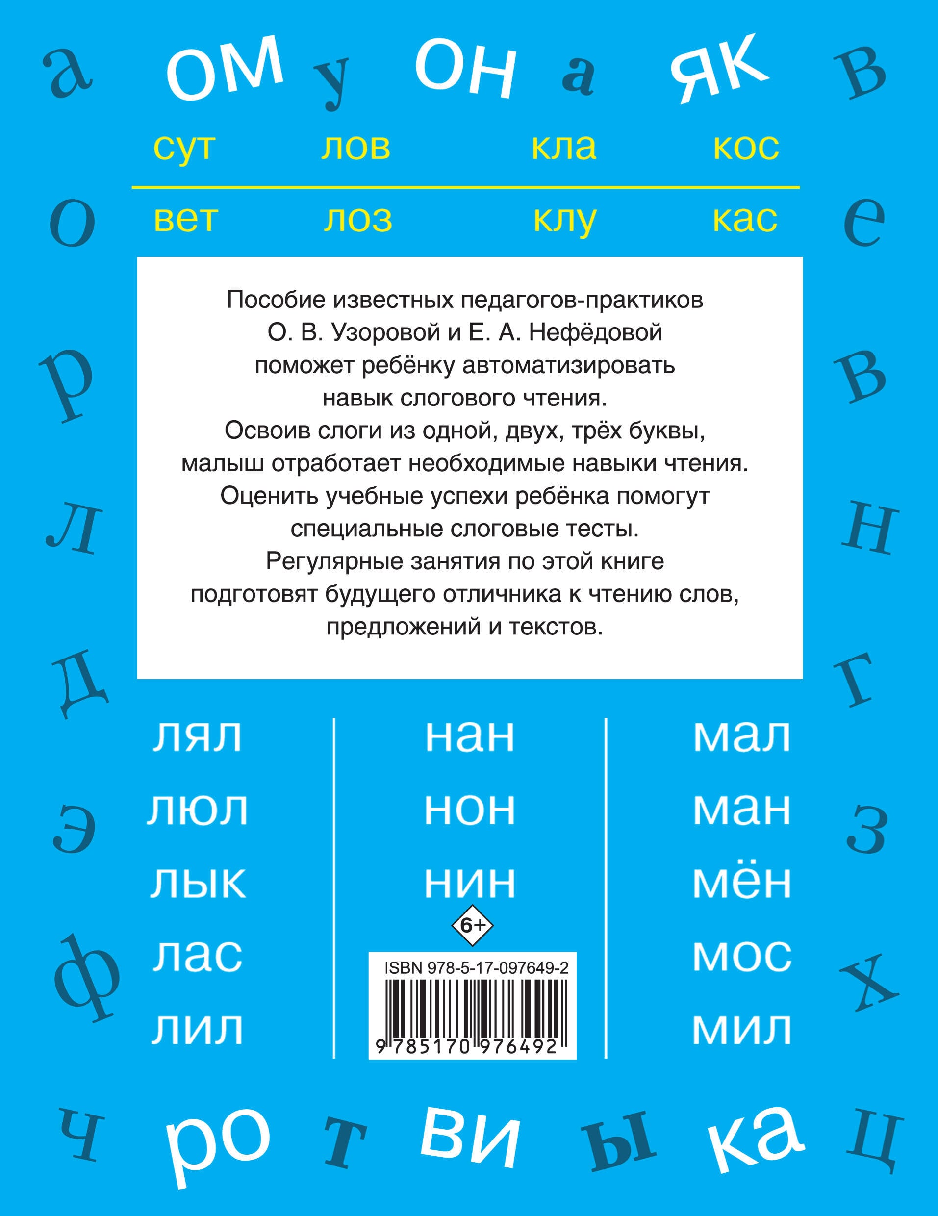 Новое учебное пособие известных педагогов-практиков О. В. Узоровой и Е. А. Нефёдовой поможет ребёнку автоматизировать навык слогового чтения. Тесты в конце каждого раздела позволят родителям проверить скорость чтения ребёнка и оценить эффективность обучения.| Издательство | Издательство "АСТ" |