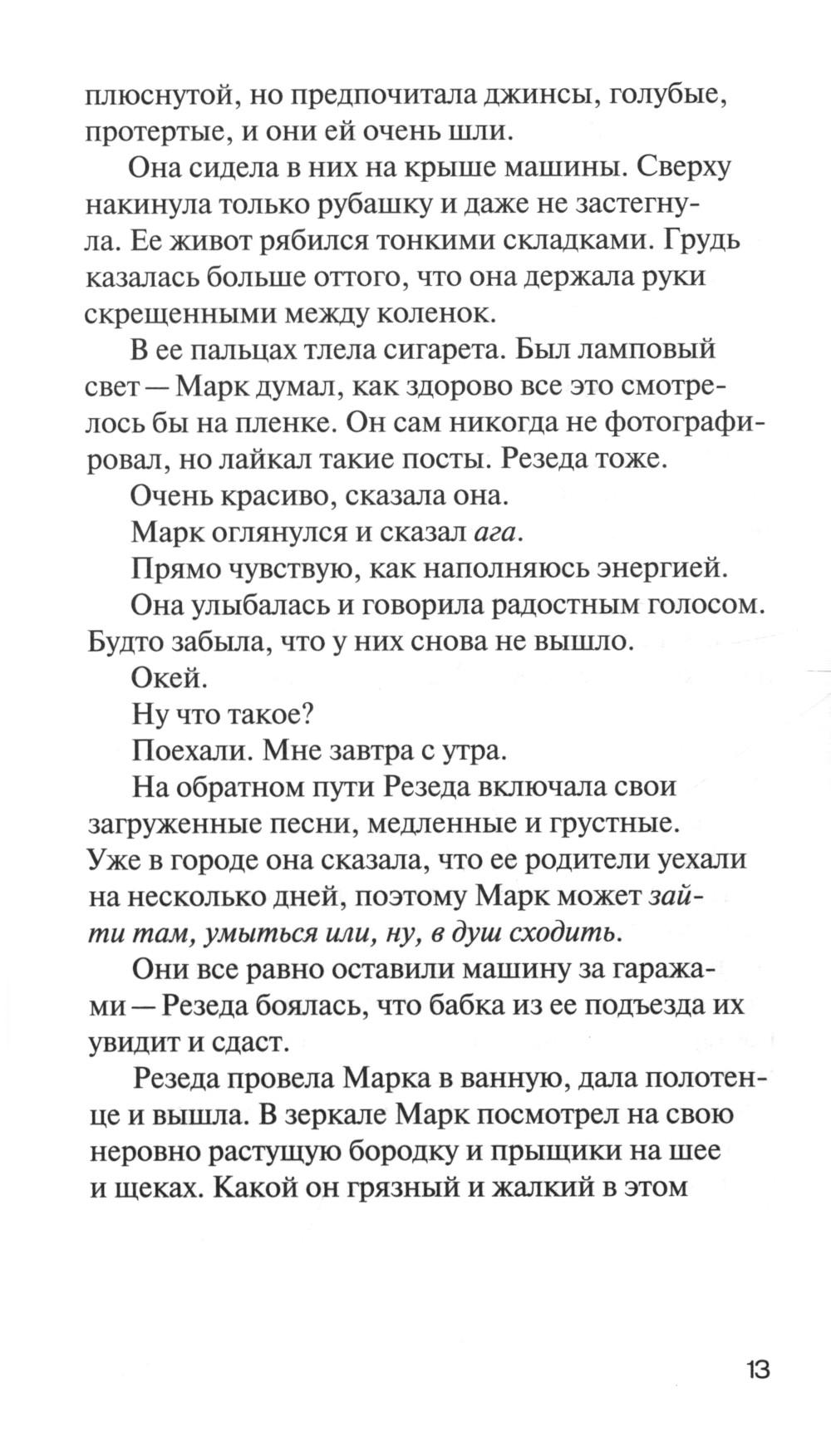 Быть молодым в Йошкар-Оле непросто. Особенно если ты равнодушен к кальяну, читаешь Томаса Вулфа в оригинале, дружишь с бездомным художником и сам ночуешь в машине. Марк окончил универ, поссорился с отцом и ушел из дома. Теперь он работает бариста и переводит порнофильмы, а по ночам фантазирует о бывшей. Марк стыдится своего марийского разреза глаз. Где и с кем бы он ни был, он чувствует себя чужим. Исследуя свои корни, Марк узнает правду о преступлениях советской эпохи. Они не должны повториться. Новое лето принесет лесные пожары - их придется тушить двадцатилетним.| Издательство | Поляндрия NoAge |