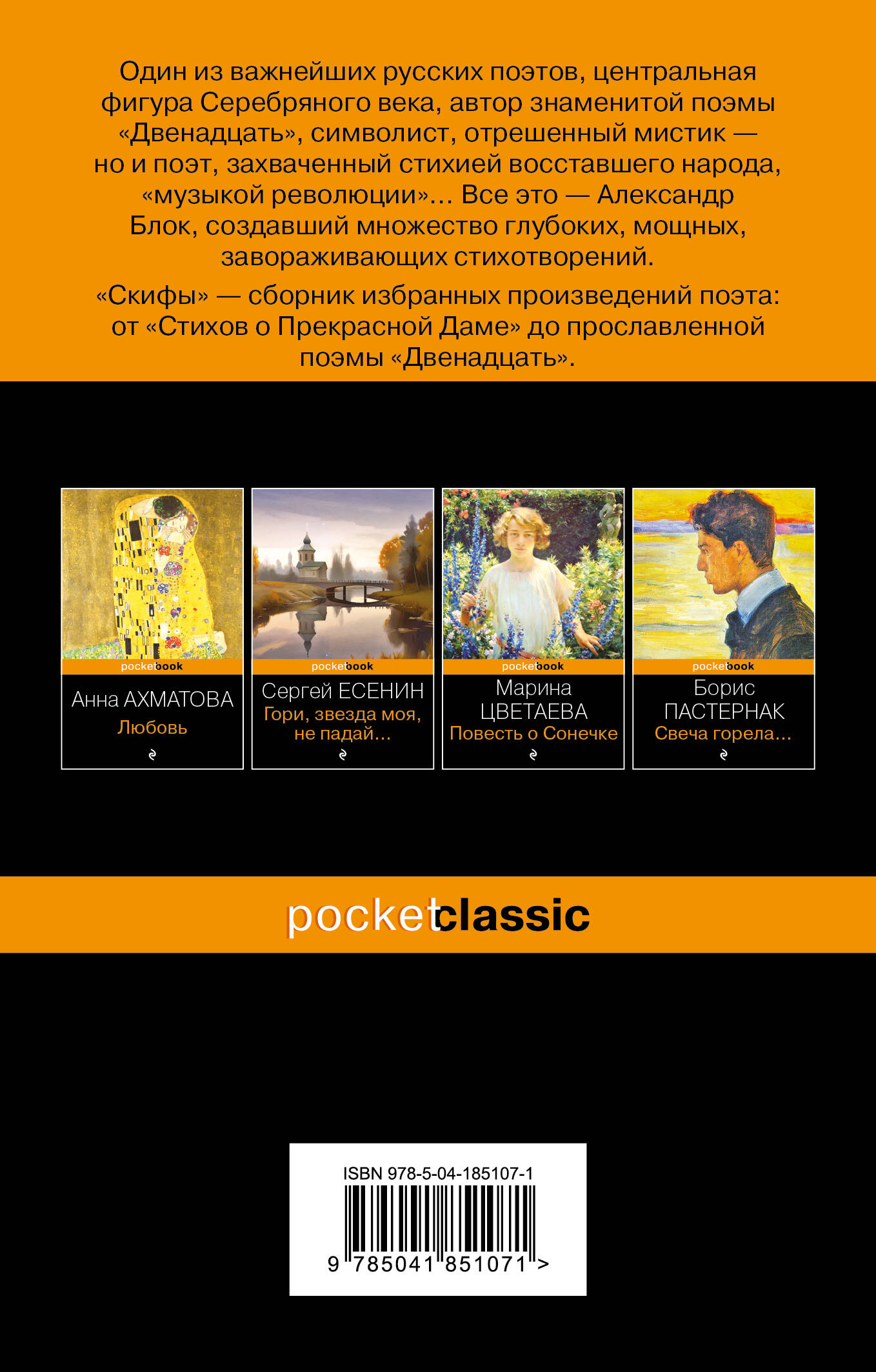Символист и отрешённый мистик - но и поэт, захваченный стихией восставшего народа, "музыкой революции", один из важнейших русских поэтов, центральная фигура Серебряного века - всё это Александр Блок. Поэт создал множество глубоких, мощных, завораживающих стихотворений, подарив читателям важнейшие образцы гражданской, любовной и философской лирики. "Скифы" - сборник избранных произведений поэта: от "Стихов о Прекрасной Даме", до прославленной поэмы "Двенадцать".| Издательство | ООО "Издательство "Эксмо" |