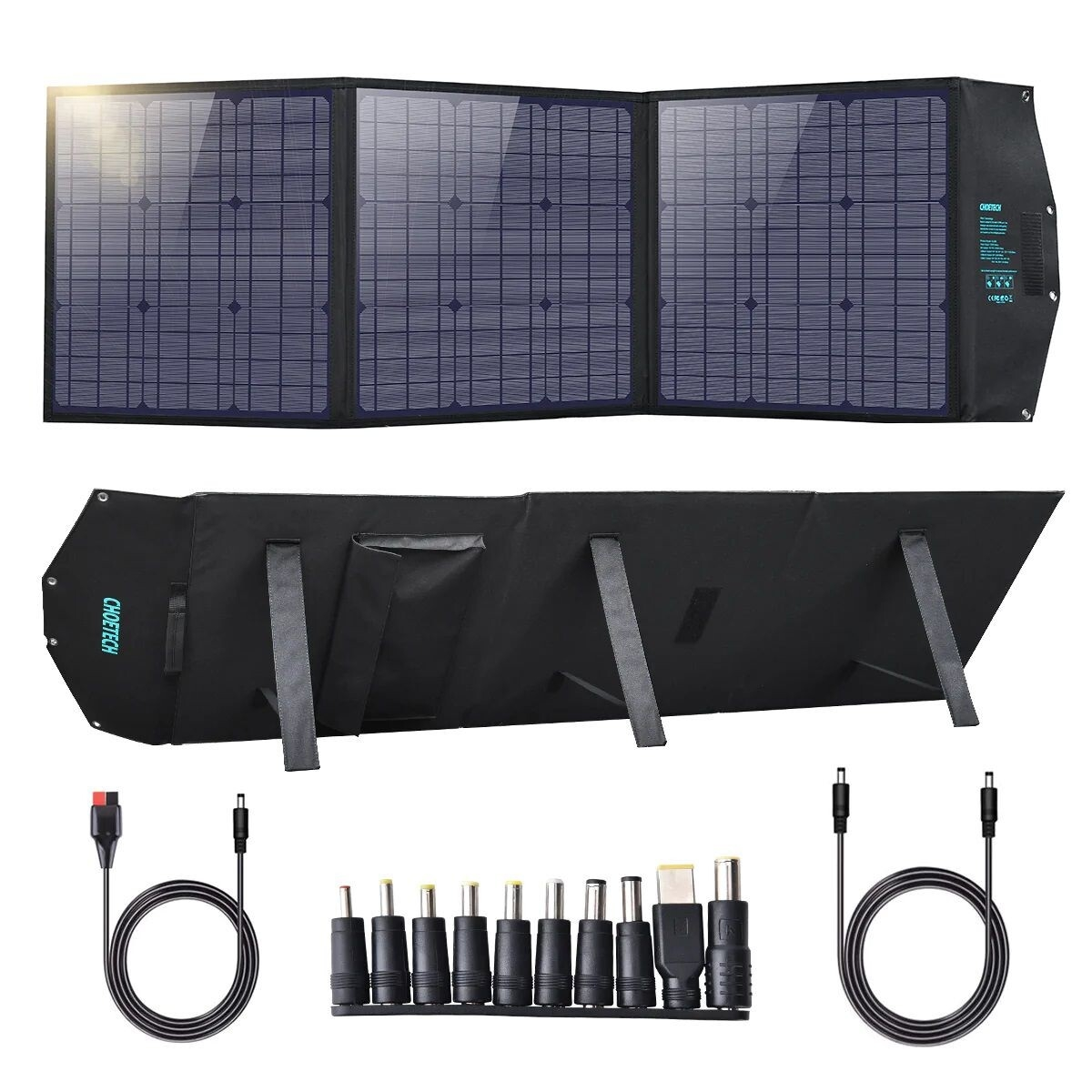 For hikers This 120 watt solar panel with USB charger can charge your devices via the included DC, USB or Type C port. The portable solar panel is a great choice for camping, caravanning, and is also a good support for those who love long hikes - mountain and more.