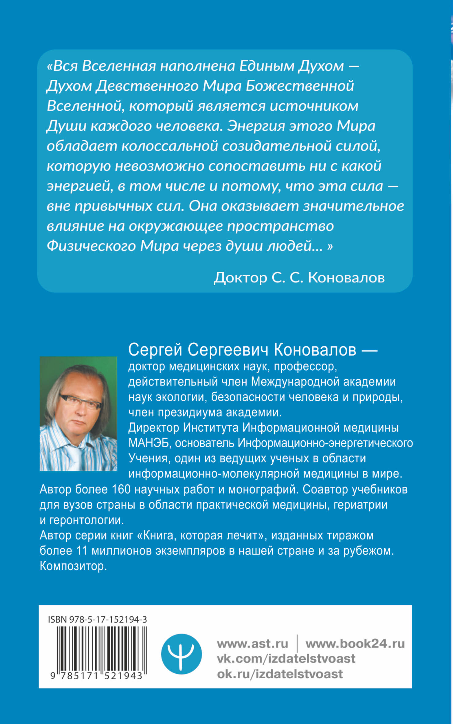 • Эта книга всемирно известного врача и ученого, доктора медицинских наук, профессора Сергея Сергеевича Коновалова - настоящий помощник для всех очных и заочных пациентов-студентов Доктора на пути Исцеления. • В книге Доктора читатель найдет ответы на самые важные вопросы Информационно-энергетического Учения, работы с Энергией Сотворения, возвращения и сохранения здоровья. • Эта книга важна для каждого пациента-студента Доктора Коновалова. Кому будет полезна книга? 1. Тем, кто болен, мечтает об исцелении или о сохранении здоровья на долгие годы. Сергей Сергеевич Коновалов помог уже сотням тысяч неизлечимых больных. Автор откроет и вам Путь к здоровью! 2. Тем, кто не хочет болеть и стареть, кто хочет понять истинные причины своих болезней и ищет способы исцеления души и тела. 3. Тем, кто интересуется Информационно-энергетическим Учением, ищет знания об устройстве человека, Мира и Вселенной, хочет получить знания о Душе, Ангеле. 4. Тем, кто хочет получить знания о происхождении Вселенной и Человека, эволюции, генетике и т. д., узнать, откуда мы появились на Земле и в чем наше Предназначение. 5. Тем, кто живет далеко от Москвы и Санкт-Петербурга и не может присутствовать на лекциях и встречах Доктора, но хочет "слышать" его слова.| Издательство | ИЗДАТЕЛЬСТВО "АСТ" |