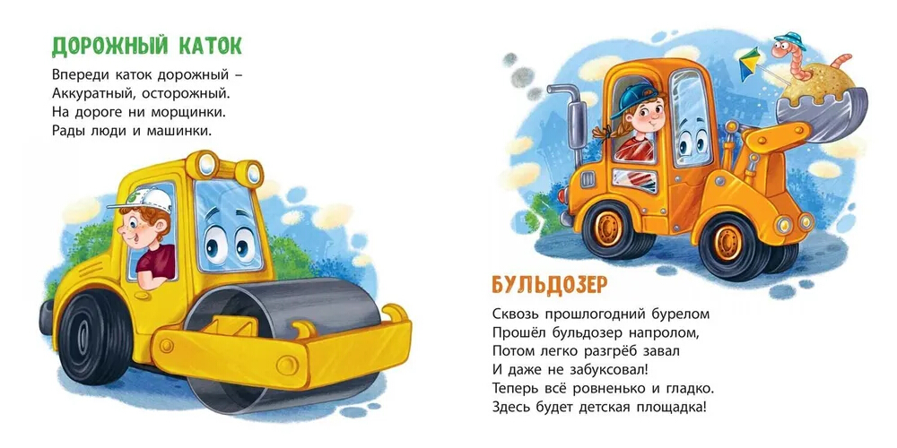 В этой веселой книжке малыши познакомятся с самыми разными машинами, которые они могут встретить в городе. Это автобус и такси, пожарная машина и скорая помощь, почтовый грузовик и бензовоз. А еще самосвал, бульдозер, каток и бетономешалка. О каждой машинке Наталья Карпова сочинила забавное короткое стихотворение, а их веселые «портреты» нарисовала Екатерина Варжунтович.| Издательство | ЭНАС-КНИГА |
