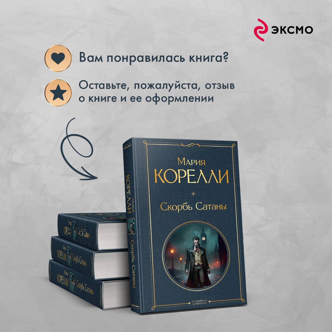 Действие романа происходит в Лондоне в 1895 году. Сатана ходит среди людей в поисках очередной игрушки, с которой сможет позабавиться, чтобы показать Богу, что может развратить кого угодно. Он хочет найти кого-то достойного, кто сможет сопротивляться искушениям, но вокруг царит безверие, коррупция, продажность. Джеффри Темпест, молодой обедневший писатель, едва сводит концы с концами, безуспешно пытается продать свой роман. В очередной раз, когда он размышляет о своем отчаянном положении, он замечает на столе три письма. Первое - от друга из Австралии, который разбогател на золотодобыче, он сообщает, что посылает к Джеффри друга, который поможет ему выбраться из бедности. Второе - записка от поверенного, в которой подробно описывается, что он унаследовал состояние от умершего родственника. Третье - рекомендательное письмо от Князя Лучо Риманеза, «избавителя от бедности», про которого писал друг из Австралии. Сможет ли Джеффри сделать правильный выбор, сохранить талант и душу?.. «Скорбь Сатаны» - мистический декадентский роман английской писательницы Марии Корелли, опубликованный в 1895 году и ставший крупнейшим бестселлером в истории викторианской Англии.| Издательство | ООО "Издательство "Эксмо" |