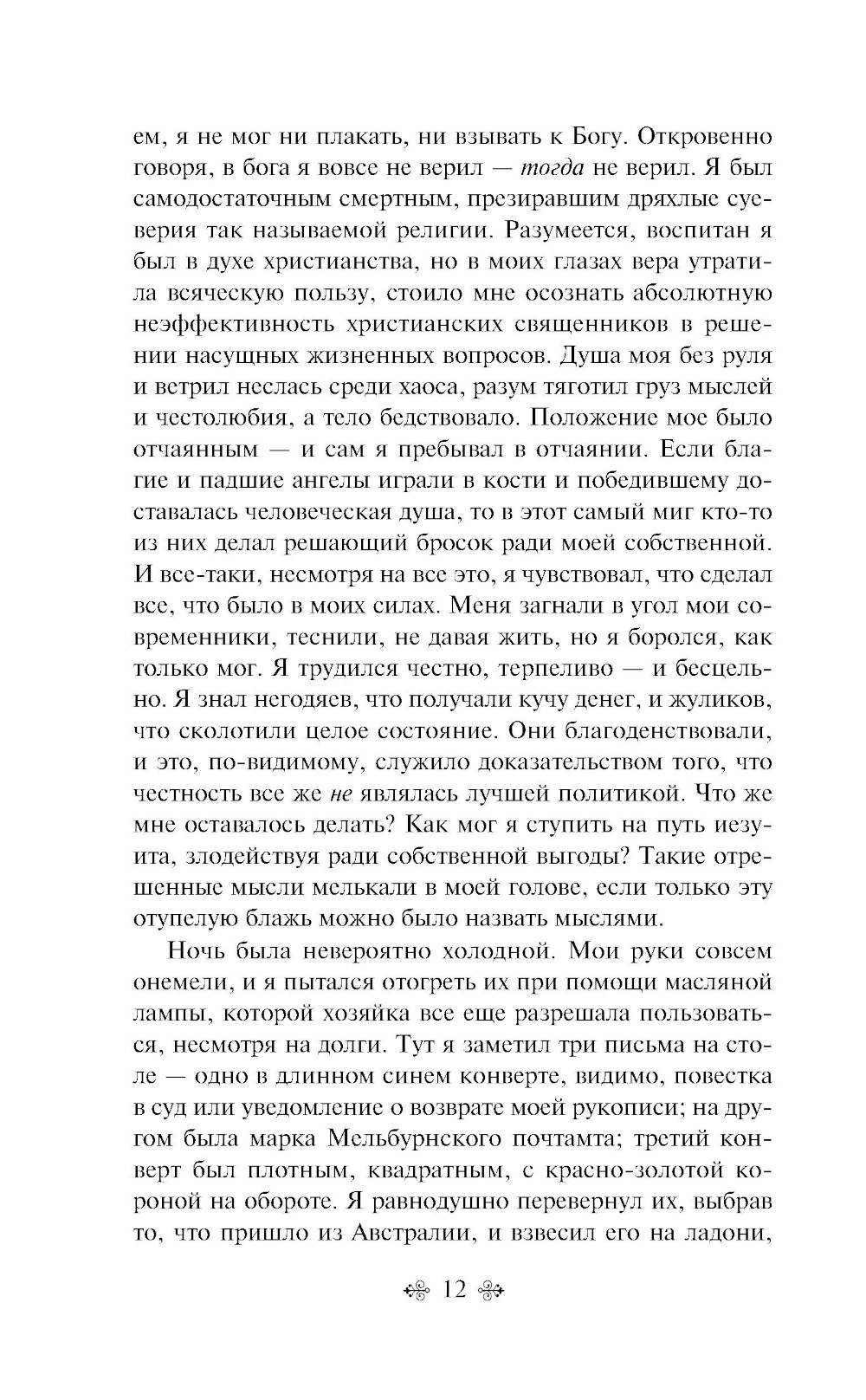 Действие романа происходит в Лондоне в 1895 году. Сатана ходит среди людей в поисках очередной игрушки, с которой сможет позабавиться, чтобы показать Богу, что может развратить кого угодно. Он хочет найти кого-то достойного, кто сможет сопротивляться искушениям, но вокруг царит безверие, коррупция, продажность. Джеффри Темпест, молодой обедневший писатель, едва сводит концы с концами, безуспешно пытается продать свой роман. В очередной раз, когда он размышляет о своем отчаянном положении, он замечает на столе три письма. Первое - от друга из Австралии, который разбогател на золотодобыче, он сообщает, что посылает к Джеффри друга, который поможет ему выбраться из бедности. Второе - записка от поверенного, в которой подробно описывается, что он унаследовал состояние от умершего родственника. Третье - рекомендательное письмо от Князя Лучо Риманеза, «избавителя от бедности», про которого писал друг из Австралии. Сможет ли Джеффри сделать правильный выбор, сохранить талант и душу?.. «Скорбь Сатаны» - мистический декадентский роман английской писательницы Марии Корелли, опубликованный в 1895 году и ставший крупнейшим бестселлером в истории викторианской Англии.| Издательство | Эксмо |