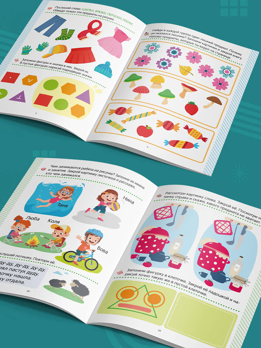 Книга "Память" из серии "Скоро в школу" - тренажёр для будущего первоклассника. Упражнения на логику, мышление и внимательность не только помогут развить память и фантазию, но и подготовят к обучению в школе. В пособии собраны десятки заданий, которые помогут повторить буквы и слоги, научиться писать и начать формировать красивый почерк. Серия книг "Скоро в школу" от торговой марки Malamalama - это интересное и нескучное обучение !