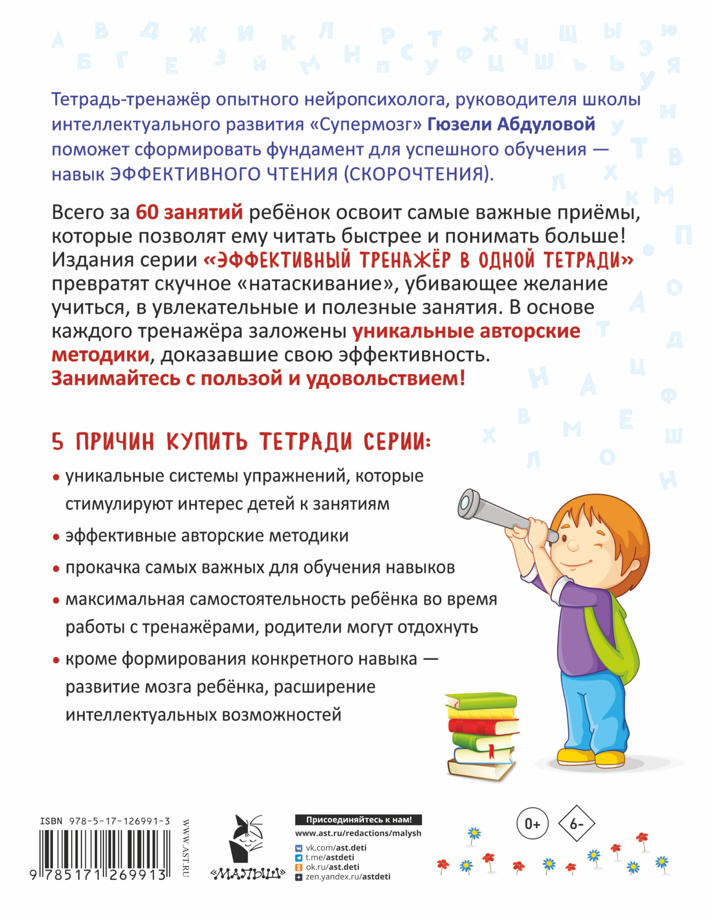 Хотите, чтобы ваш ребёнок стал читать быстрее и понимать больше всего за 60 занятий? Тоггда эта книга станет для вас настоящей палочкой-выручалочкой. Уникальная методика от опытного нейропсихолога поможет легко и весело освоить самые важные приёмы скорочтения. Скорочтения - эффективный фундамент для успешного обучения!| Издательство | ИЗДАТЕЛЬСТВО "АСТ" |