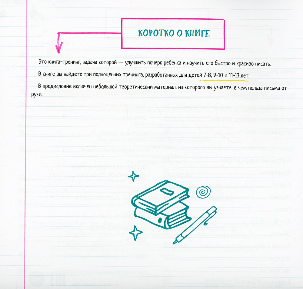 Перед вами 18-дневный тренинг, который в игровой форме поможет ребенку не только улучшить почерк, но и научиться писать значительно быстрее. Письмо от руки развивает внимание, мышление, память и благотворно влияет на нервную систему.