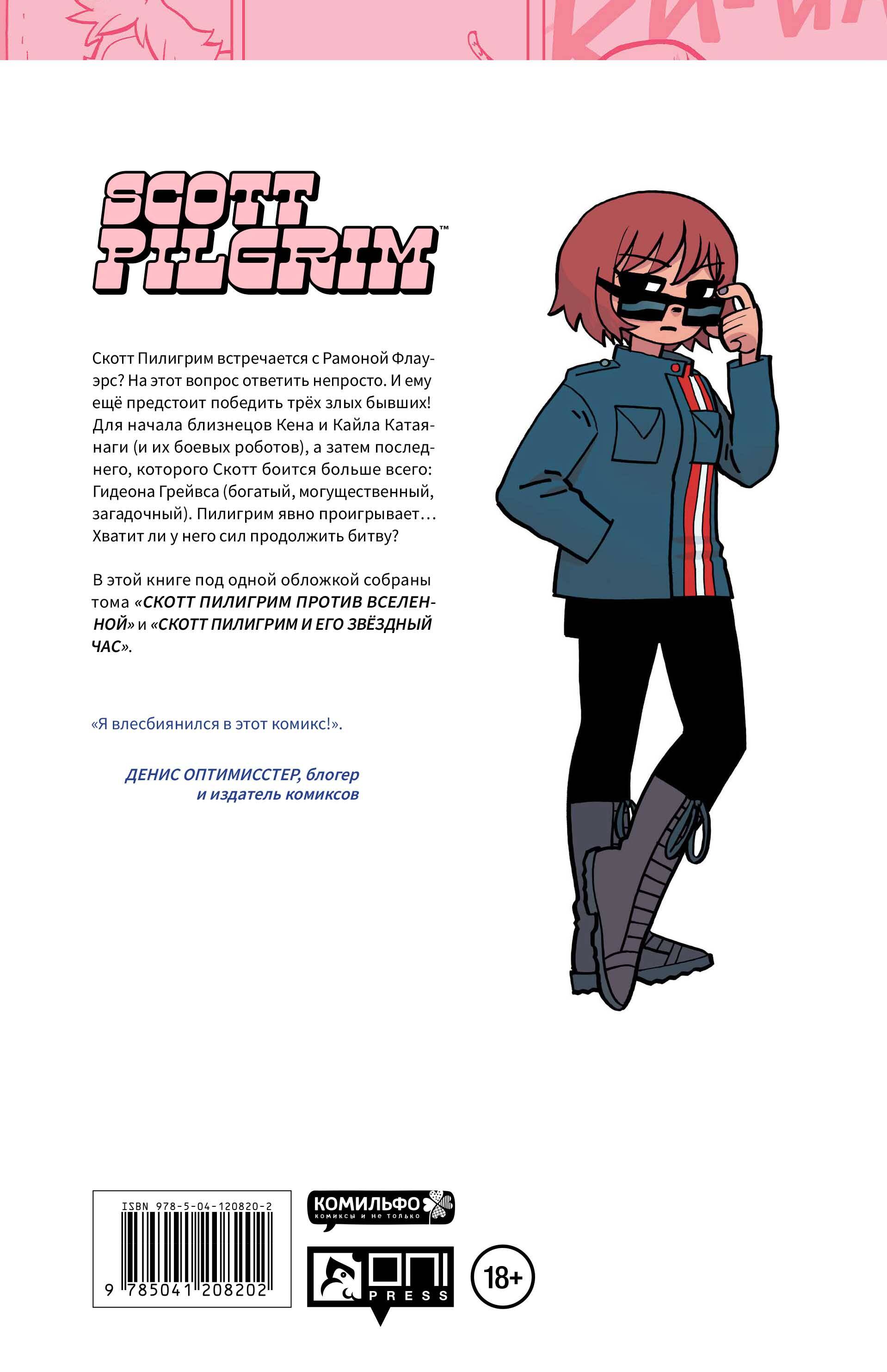 Скотт Пилигрим встречается с Рамоной Флауэрс? На этот вопрос ответить непросто. И ему ещё предстоит победить трёх злых бывших! Для начала близнецов Кена и Кайла Катаянаги (и их боевых роботов), а затем последнего, которого Скотт боится больше всего: Гидеона Грейвса - богатого, могущественного и загадочного. Пилигрим явно проигрывает… Хватит ли у него сил продолжить битву? В этой книге под одной обложкой собраны тома "СКОТТ ПИЛИГРИМ ПРОТИВ ВСЕЛЕННОЙ" и "СКОТТ ПИЛИГРИМ И ЕГО ЗВЁЗДНЫЙ ЧАС". "Я влесбиянился в этот комикс!" ДЕНИС ОПТИМИССТЕР, блогер и издатель комиксов| Издательство | ООО "Издательство "Эксмо" |