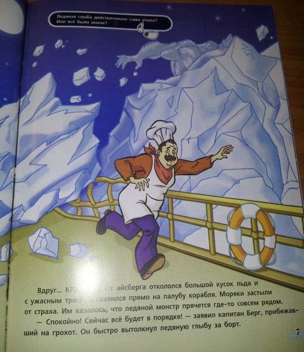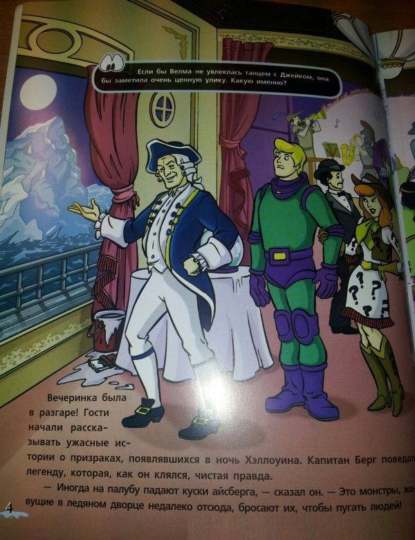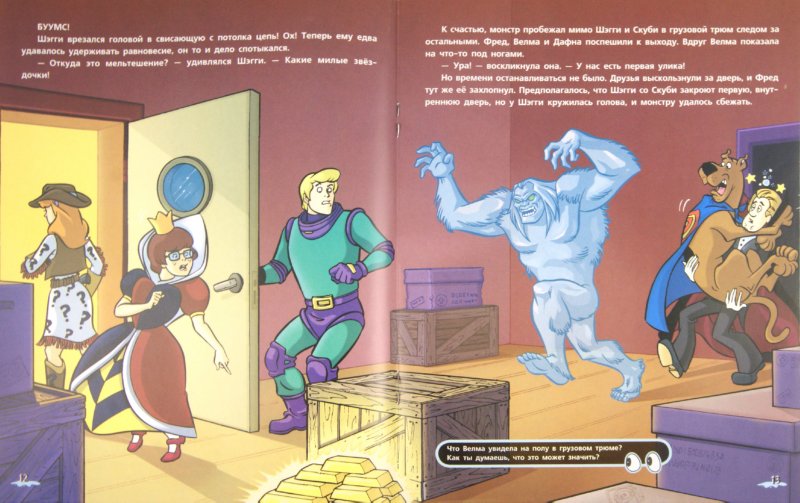 Для младшего школьного возраста в канун Хэллоуина корпорация "Тайна" отправляется в круиз по заливу Глейшер-Бей на борту роскошного океанского лайнера. Шэгги, Скуби, Фред, Дафна и Велма весело проводят время на маскараде в главном танцевальном зале корабля. Но друзья даже не подозревают, что очередная тайна совсем рядом! Неужели на круизном лайнере действительно поселились ужасные ледяные монстры? Или корпорации "Тайна" удастся разоблачить преступников? Друзьям понадобится твоя помощь! Сможешь отыскать улики и обнаружить похитителей золота?