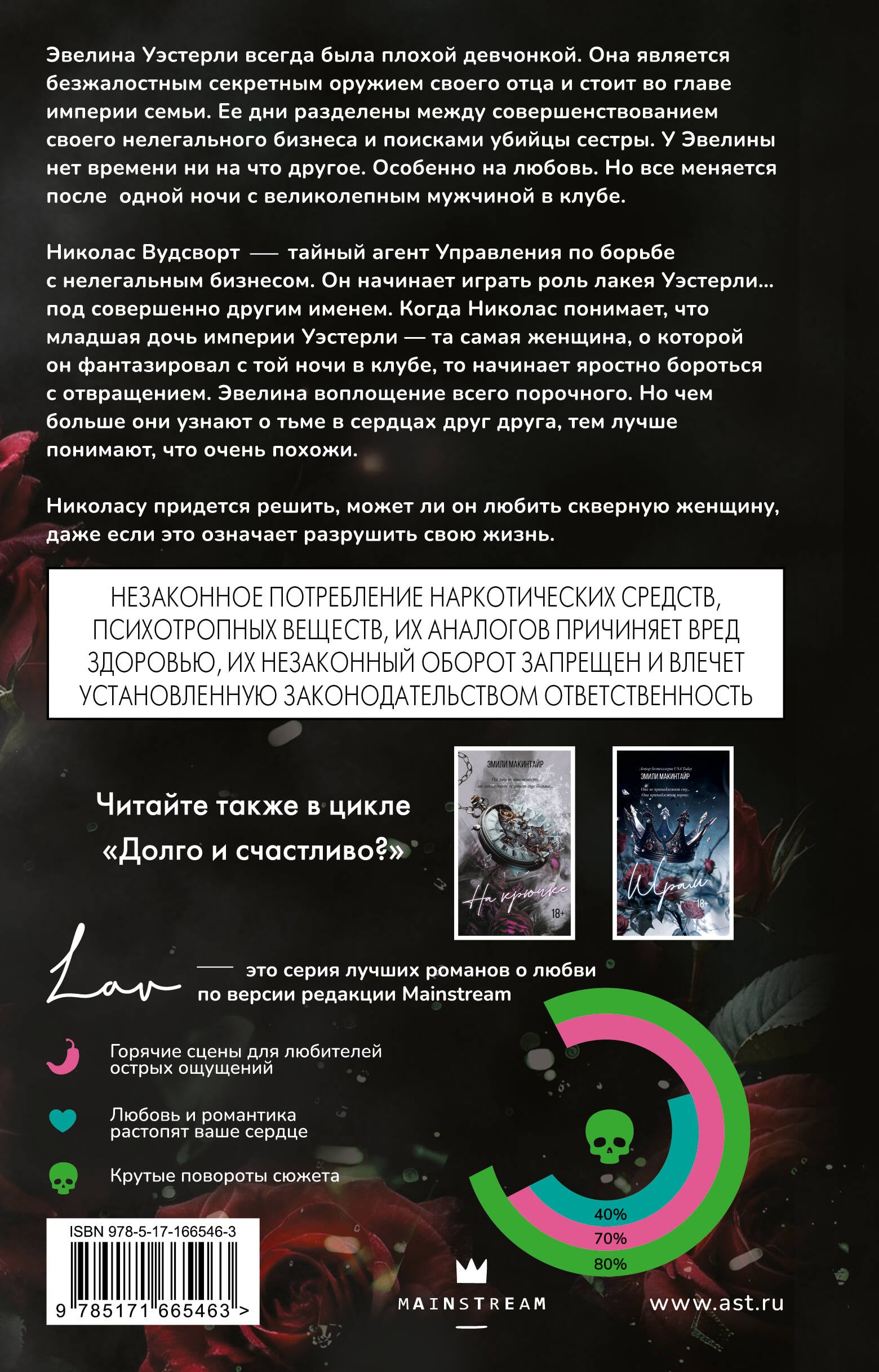 Эвелина Уэстерли всегда была плохой девчонкой. Она является безжалостным секретным оружием своего отца и стоит во главе империи семьи. Ее дни разделены между совершенствованием своего нелегального бизнеса и поисками убийцы сестры. У Эвелины нет времени ни на что другое. Особенно на любовь. Но все меняется после одной ночи с великолепным мужчиной в клубе. Николас Вудсворт - тайный агент Управления по борьбе с нелегальным бизнесом. Он начинает играть роль лакея Уэстерли… под совершенно другим именем. Когда Николас понимает, что младшая дочь империи Уэстерли - та самая женщина, о которой он фантазировал с той ночи в клубе, то начинает яростно бороться с отвращением. Эвелина воплощение всего порочного. Но чем больше они узнают о тьме в сердцах друг друга, тем лучше понимают, что очень похожи. Николасу придется решить, может ли он любить скверную женщину, даже если это означает разрушить свою жизнь.| Издательство | Издательство "АСТ" |