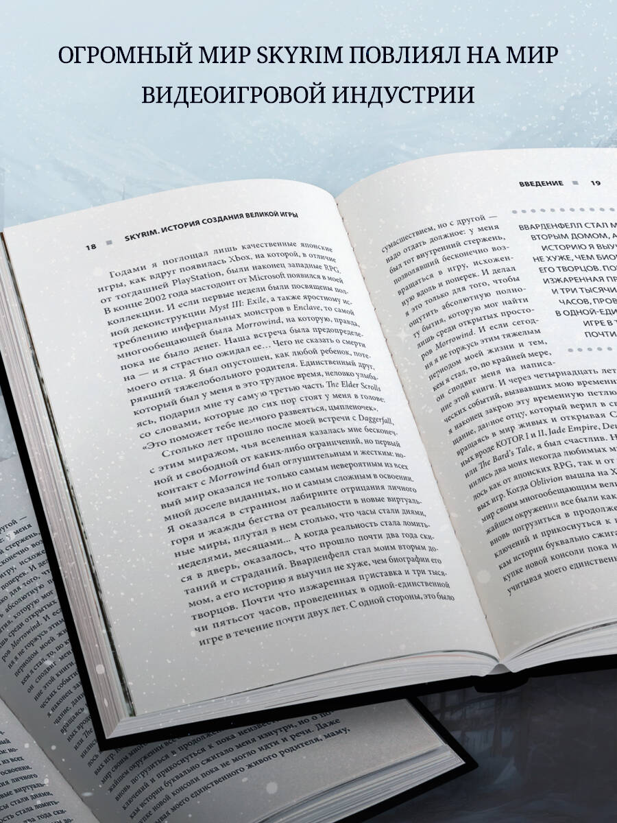 Готов ли ты к битве, Довакин? Skyrim - пятая игра линейки The Elder Scrolls - заслуженно обрела мировую славу. Запустив игру, вы оказываетесь в детально проработанной фэнтезийной вселенной, населенной героями и наемниками разных мастей, монстрами и, конечно же, могущественными драконами. Вашему персонажу, который пока еще не знает о великой судьбе, выпавшей на его долю, предстоит долгий и извилистый путь, в конце которого его ждет встреча с Разрушителем Миров Алдуином. В Skyrim игрок волен свободно исследовать игровой мир и выбирать собственный стиль игры. Атмосфера, музыка, захватывающий геймпллей, в совокупности с другими составляющими, создают незабываемый игровой опыт, пробудивший страсть к жанру RPG у многих геймеров. - Вы узнаете, какие исследования проводили создатели игры, чтобы добиться аутентичности духа игровой вселенной. - Заглянете за кулисы разработки легендарной игры. - Погрузитесь в проработанную до мельчайших деталей историю и лор мира Skyrim. - По-иному взглянете на игровой процесс полюбившейся игры.