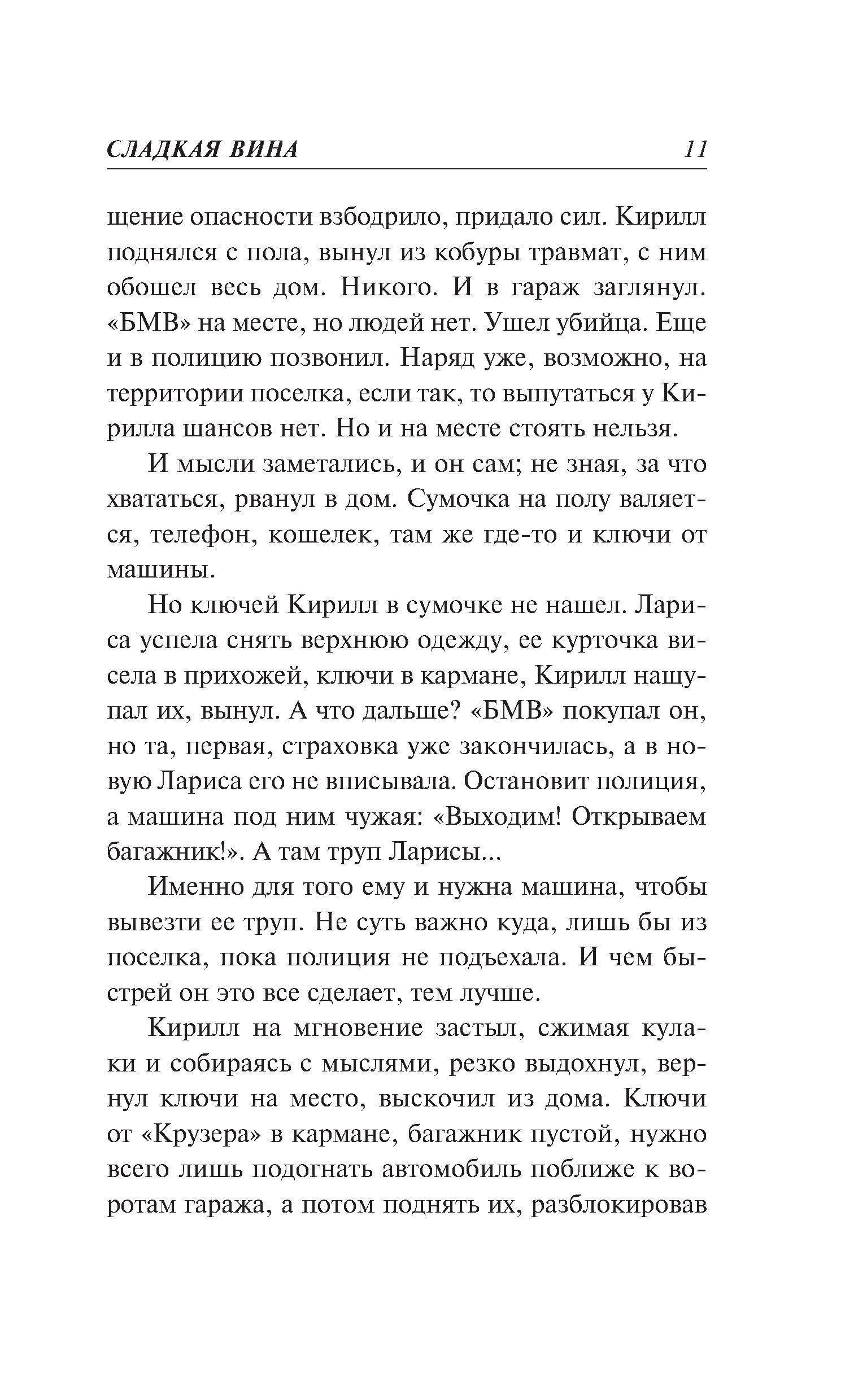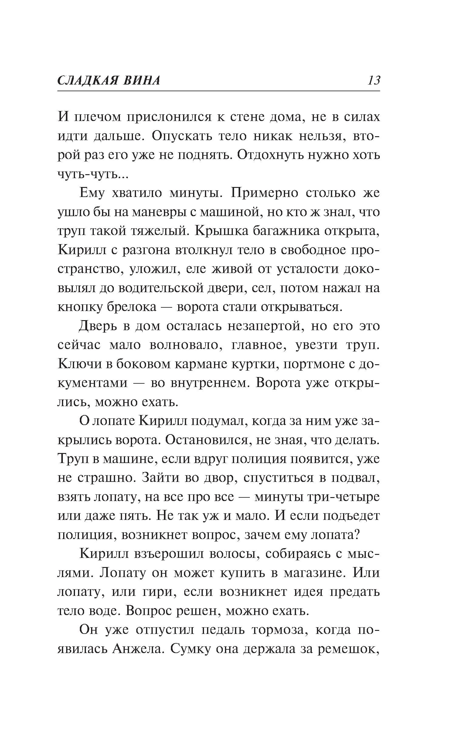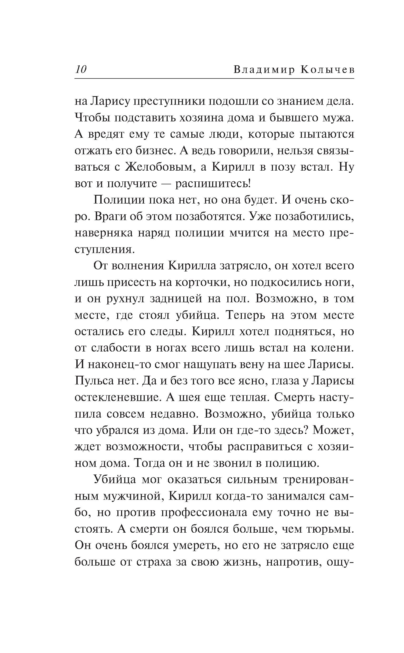 Вернувшись домой, бизнесмен Кирилл Полотнов обнаруживает в холле труп своей бывшей жены. Незадолго до этого она сообщила, что у нее проблемы, и предложила встретиться. Камеры видеонаблюдения в этот вечер почему-то не работали… Первая мысль: это провокация со стороны конкурента, давно пытающегося отнять у него бизнес. Опасаясь стать главным подозреваемым, Полотнов решает избавиться от трупа. Он грузит тело в машину, чтобы отвезти подальше от дома. И в суматохе не замечает, как за его действиями наблюдает один странный свидетель. Кирилл пока не догадывается: именно с этим человеком будут связаны все страшные неприятности, которые ожидают его в скором будущем… Еще одна захватывающая история, в которой человеческие чувства проходят жестокие испытания суровыми обстоятельствами. Автор-сила, автор-любовь, автор-ностальгия - по временам, когда миром правили строгие понятия и настоящие мужики. Суммарный тираж книг этого автора - более 13 миллионов экземпляров.| Издательство | Эксмо |