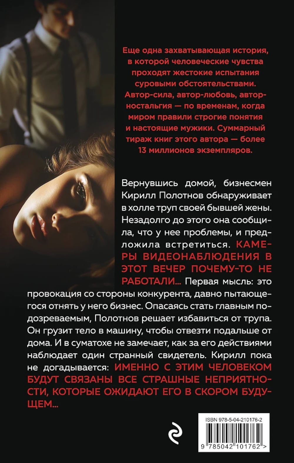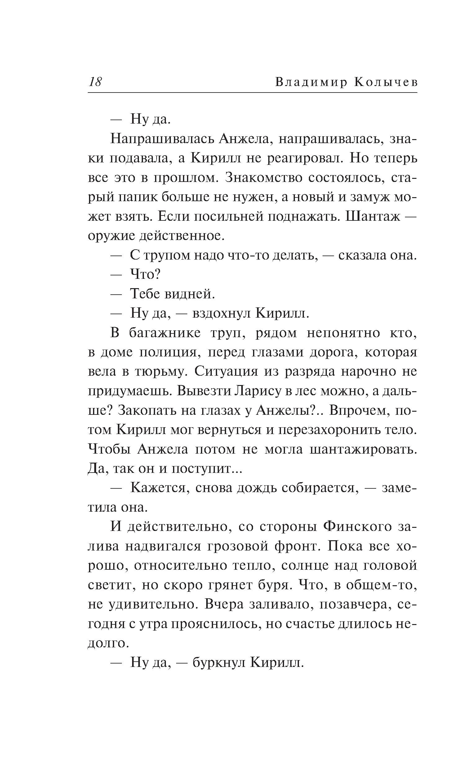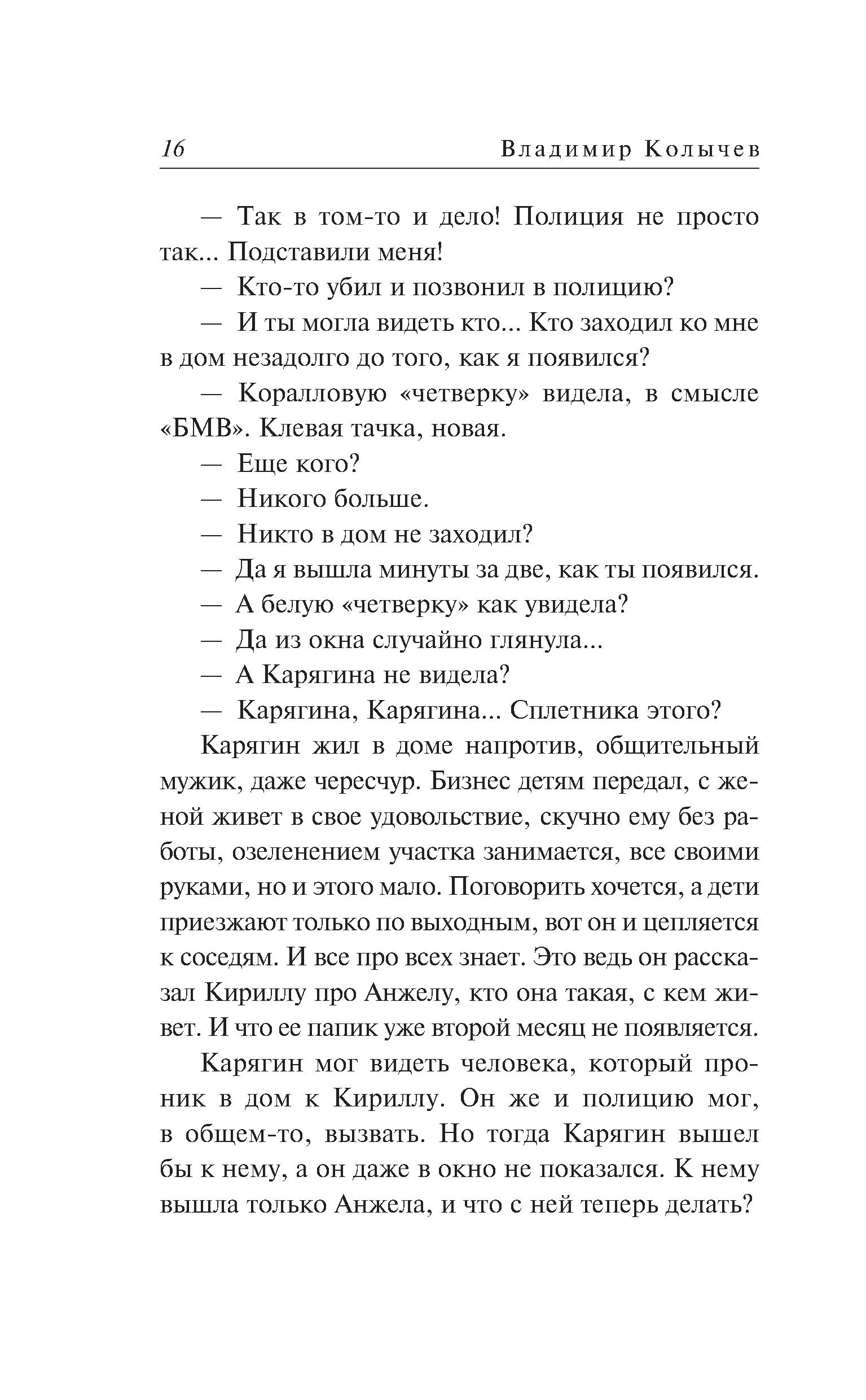 Вернувшись домой, бизнесмен Кирилл Полотнов обнаруживает в холле труп своей бывшей жены. Незадолго до этого она сообщила, что у нее проблемы, и предложила встретиться. Камеры видеонаблюдения в этот вечер почему-то не работали… Первая мысль: это провокация со стороны конкурента, давно пытающегося отнять у него бизнес. Опасаясь стать главным подозреваемым, Полотнов решает избавиться от трупа. Он грузит тело в машину, чтобы отвезти подальше от дома. И в суматохе не замечает, как за его действиями наблюдает один странный свидетель. Кирилл пока не догадывается: именно с этим человеком будут связаны все страшные неприятности, которые ожидают его в скором будущем… Еще одна захватывающая история, в которой человеческие чувства проходят жестокие испытания суровыми обстоятельствами. Автор-сила, автор-любовь, автор-ностальгия - по временам, когда миром правили строгие понятия и настоящие мужики. Суммарный тираж книг этого автора - более 13 миллионов экземпляров.| Издательство | Эксмо |