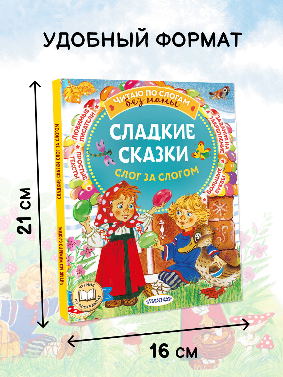 Серия «Читаю без мамы по слогам» - лучший подарок для начинающего читателя! Яркие иллюстрации, произведения лучших детских авторов и увлекательные упражнения для техники чтения сделают занятия не только полезными, но и увлекательными. Слова по слогам и с ударениями позволят малышу самостоятельно познакомиться с историями из золотого фонда мировой литературы. В этой книге собраны сказки С. Прокофьевой, Г. Остера, В. Катаева и других известных писателей. На страницах волшебных историй ребят ждут любимые лакомства, веселые приключения и добрые герои. Сказки научат ваших сына или дочку доброте, дружбе и отваге. Они станут лучшим подарком для каждого ребенка! Читайте с пользой и удовольствием!