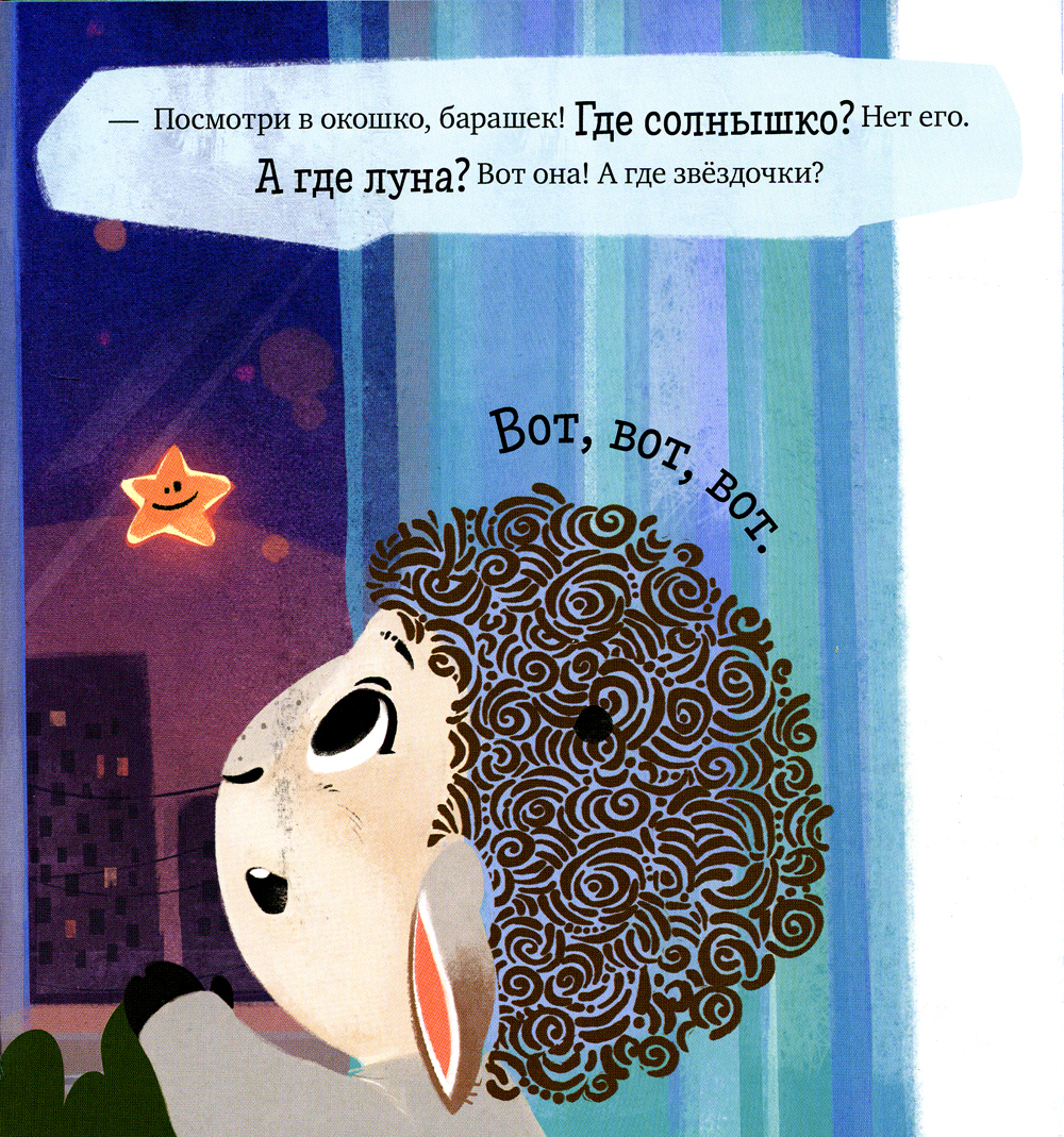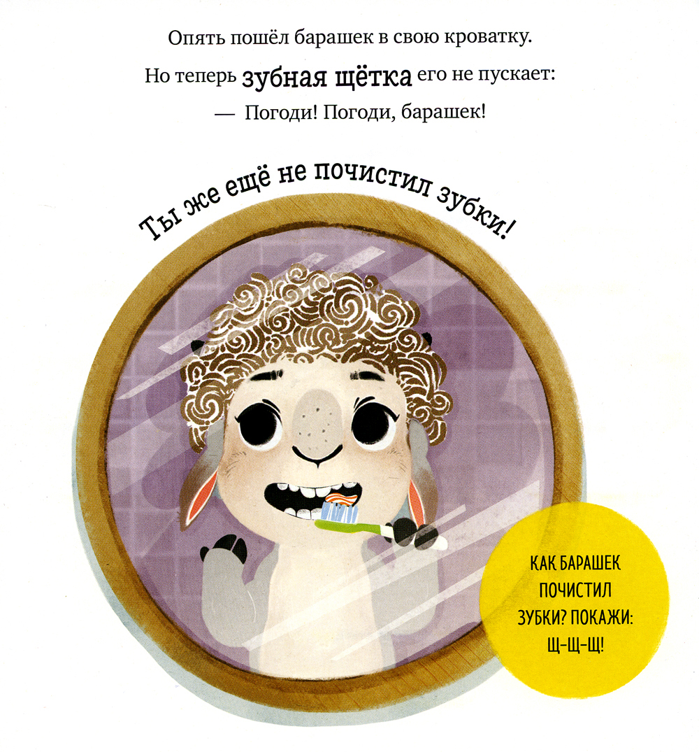 Маленькому барашку Бяше очень трудно заснуть одному. Луна уже светит в окно, а сон всё не приходит. Если ваш малыш тоже засыпает с трудом, превратите этот процесс в увлекательную игру. Ребёнку предстоит подружиться с барашком Бяшей и помочь ему собрать игрушки, почистить зубки, надеть пижаму и уснуть в тёплой кроватке. Книга поможет малышу: - быстро и легко уснуть и сладко спать; - привыкнуть спать одному; - стать более самостоятельным.| Издательство | Клевер-Медиа-Групп |